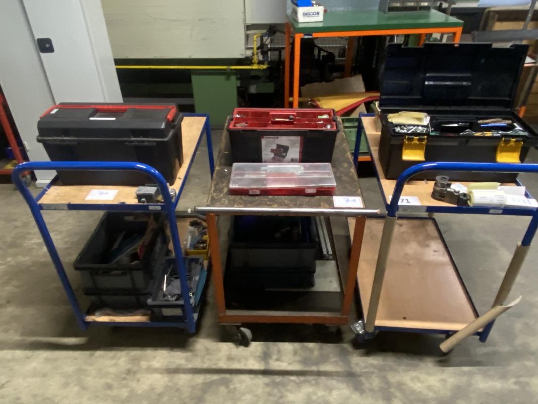 Baujahr: 2001, davon 2x Etagenwagen, Fabr. Rollcart, 3 Werzeugkisten, Inhalt Handarbeitszeuge