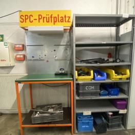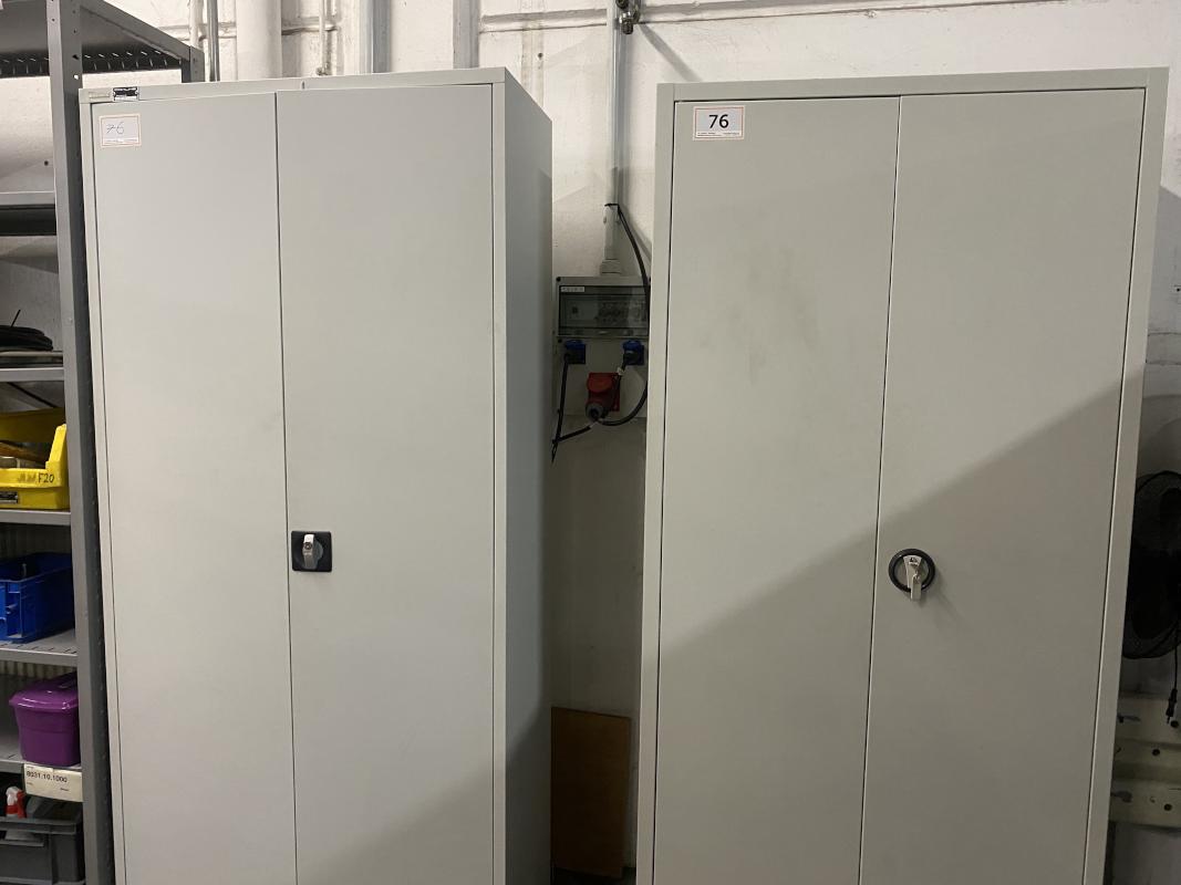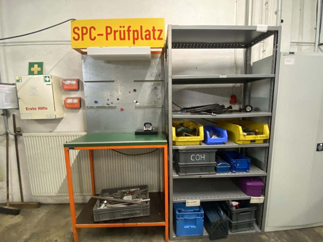 2-türig, lichtgrau, Steckregal, verzinkt, 7 Ebenen, 2x Werkzeugkiste, 1 SPC Prüfplatz, ohne Inhalt