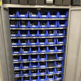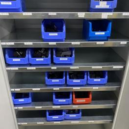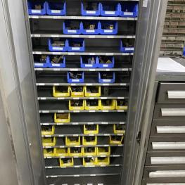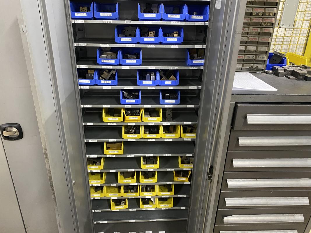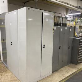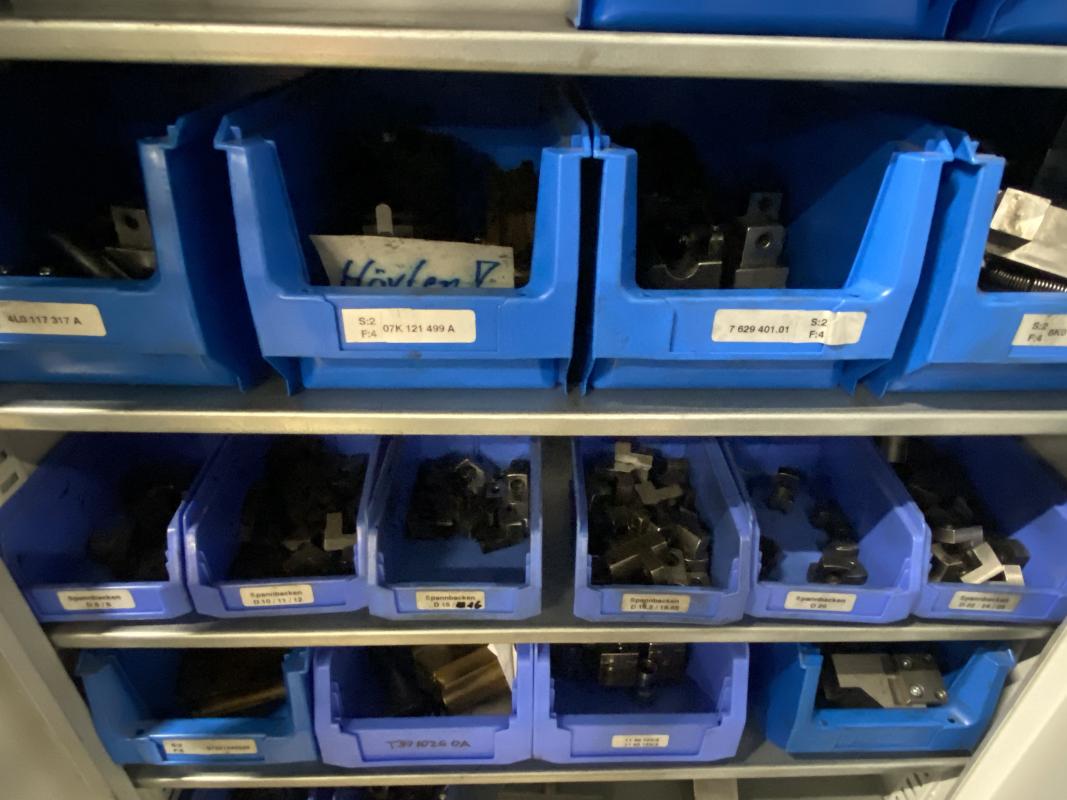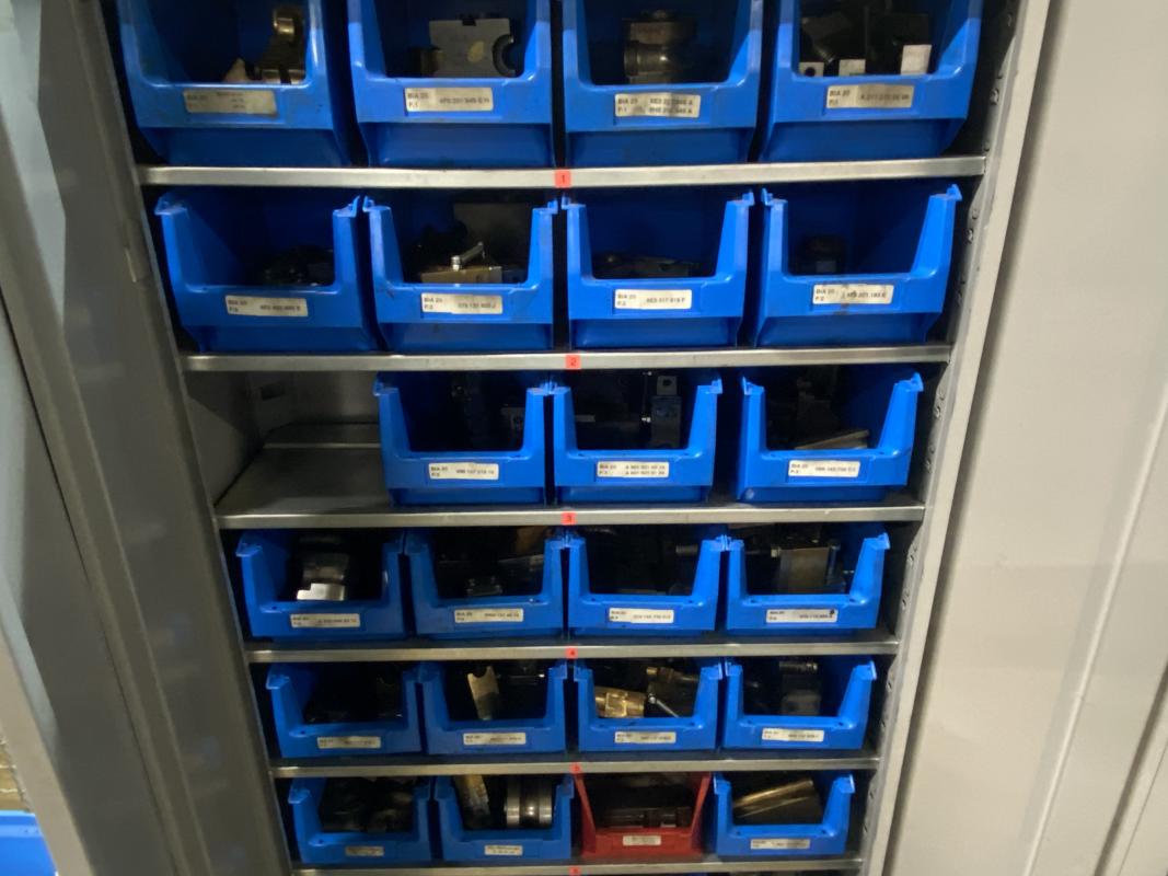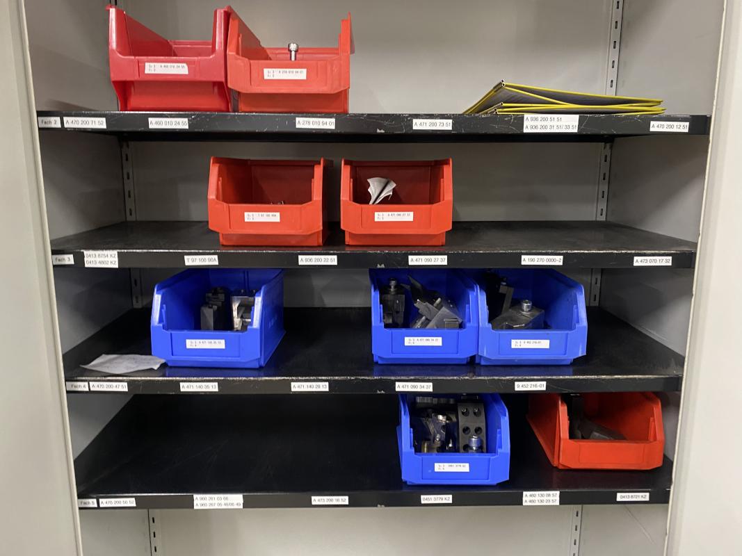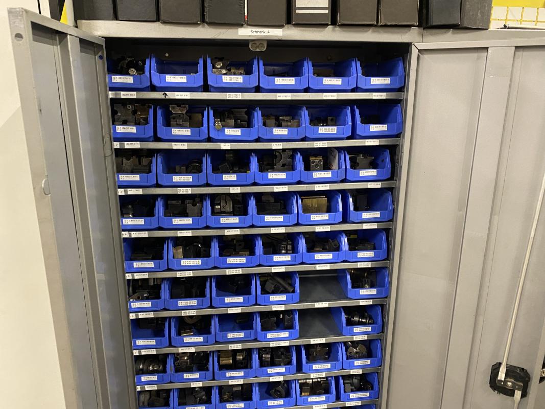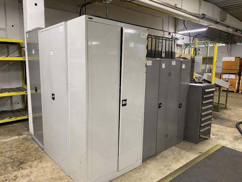 6 Stahlschränke, 3 x 950 x 420 x 1.950 mm, 2 x 660 x 260 x 1.600m, 1 Schubladenschrank, 9 Auszüge, Inhalt: Maschinenzubehör Rohrbiegemaschinen, Biegebacken etc. Zwischenverkauf