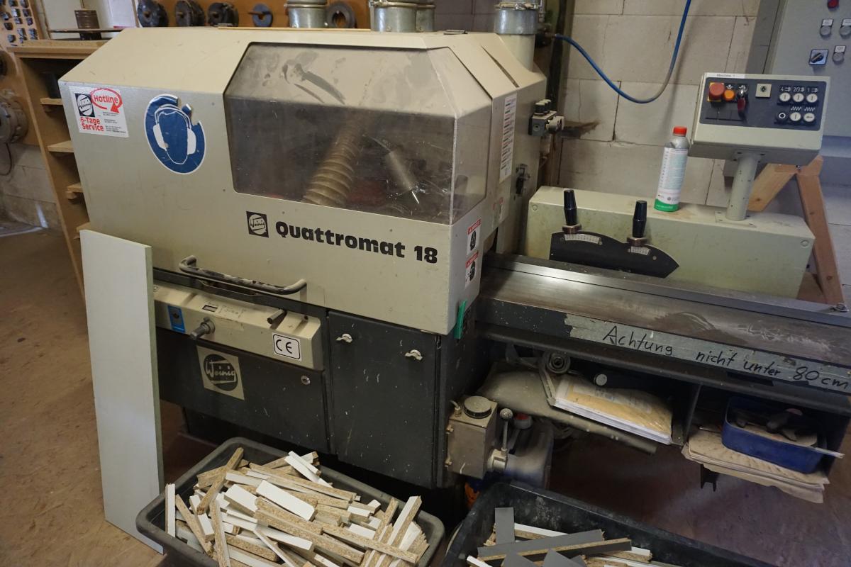 Fabrikat: WEINIG, Typ: Quattromat 18/Q18, Baujahr: 1998, Ma.-Nr. 84816, Arbeitsbreite 180 mm, Hobelhöhe 120 mm, Hobelbreite 180 mm, Zubehör/Fräswerkzeuge