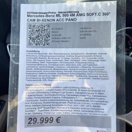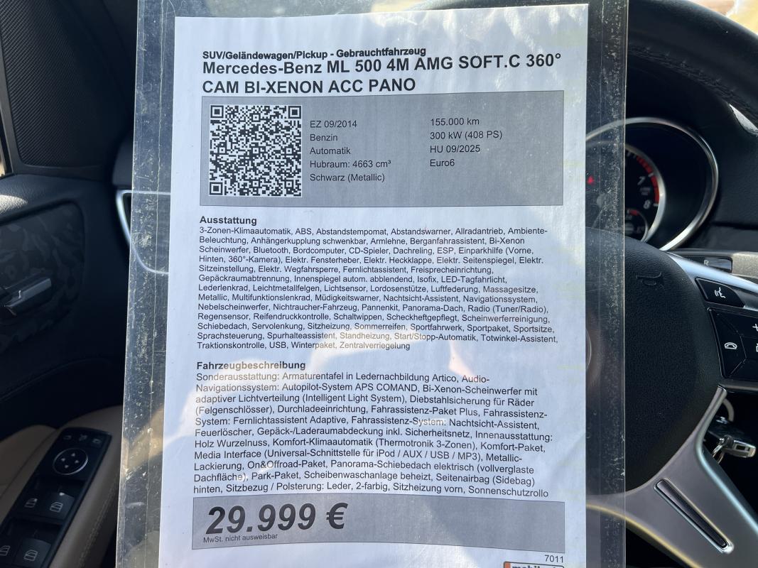 Make: MERCEDES BENZ, Model: ML 500, Gasoline, EURO 6, 300 kW, displacement 4,663 cm³, ID no. WDC1660731A447011, EZ 09/14, approx. 158,0370 km (read off)