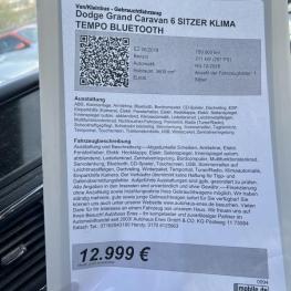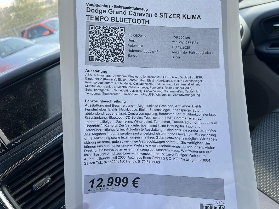 Make: DODGE, Model: Grand Caravan, Gasoline, EURO 6, 211 kW, displacement 3,605 cm³, ID no. 2C4RDGBG6HR840994, EZ 06/18, approx. 159,210 km (read off)