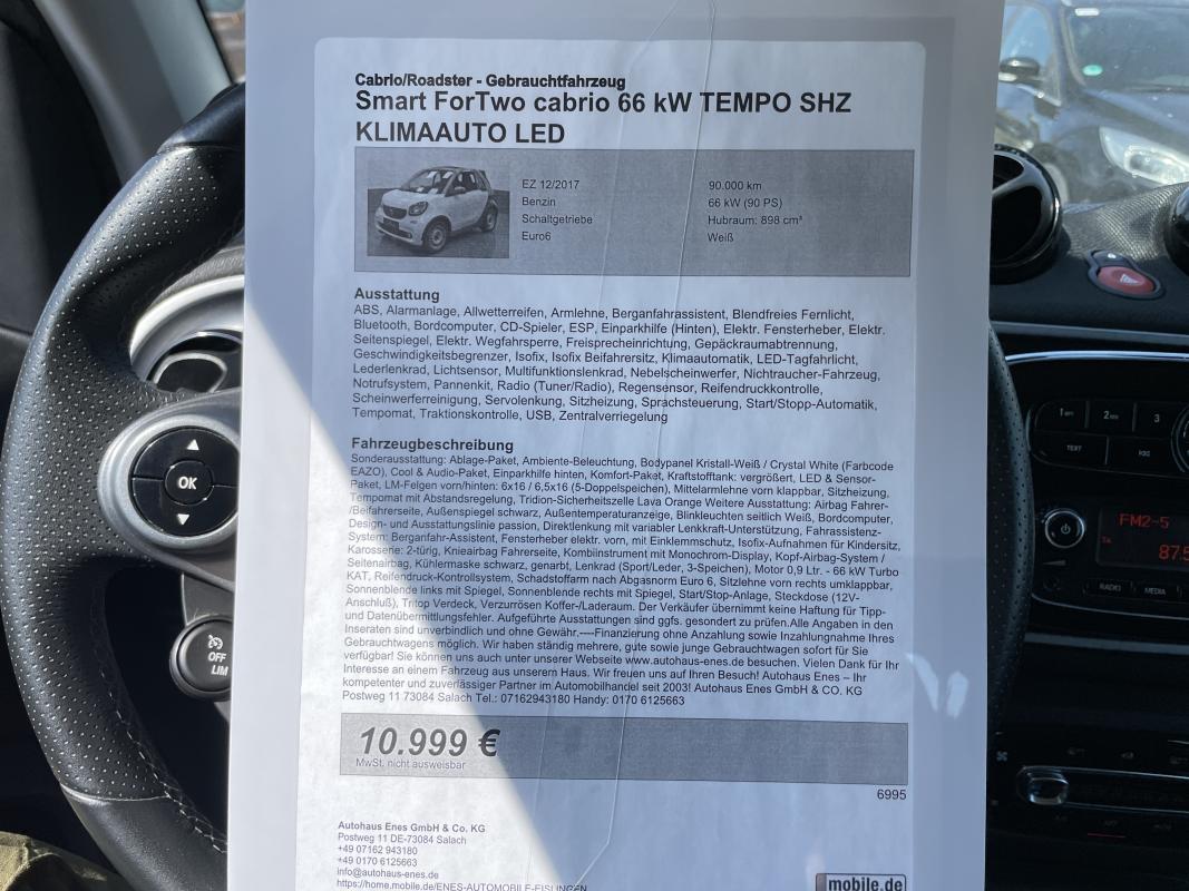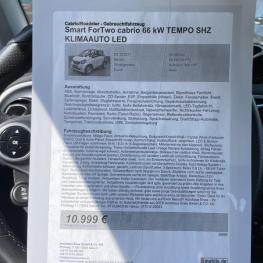 Make: SMART, Model: Fortwo, Gasoline, EURO 6, 66 kW, displacement 898 cm³, Ident-No. WME4534441K206995, EZ 06/17, approx. 93.780 km (read off)
