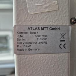 Make: ATLAS MTT, Model: Xenotest Beta+, Year of construction: ca. 2012, Ser. no. 1105001, power 13 kW, touch display, thermally insulated test chamber, sample carousel, exposure area 4,000 cm², selectable temperature control, UV-protected window