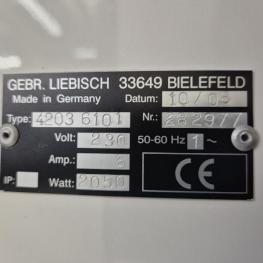 Make: LIEBISCH, Model: K1000 M-TR, Year of construction: 2008, Ser. no. 282977, manual control, chamber size (W / D / H) approx. 1,500 x 800 x 600 mm, volume approx. 1,000 litres, temp. xax. 50°C, hinged lid