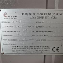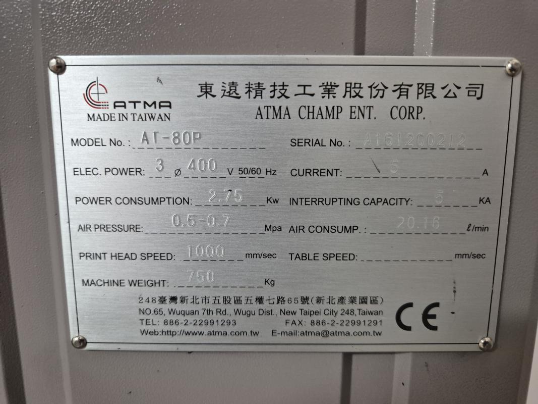 Make: ATMA, Model: AT-80P, Year of construction: 2018, Ser. no. A161200212, rated power 2.75 kW, vacuum plate approx. 700 x 900 mm, max. print format 600 x 800 mm, approx. 20 screen printing frames