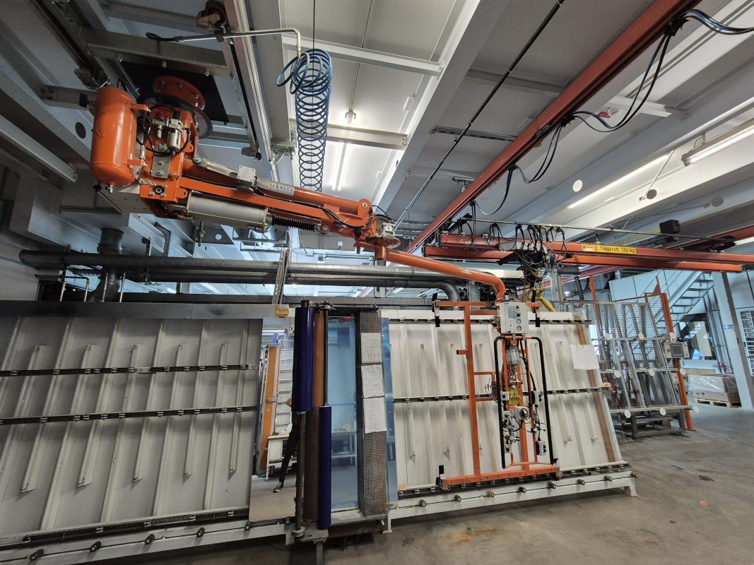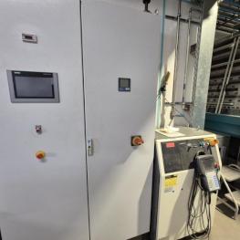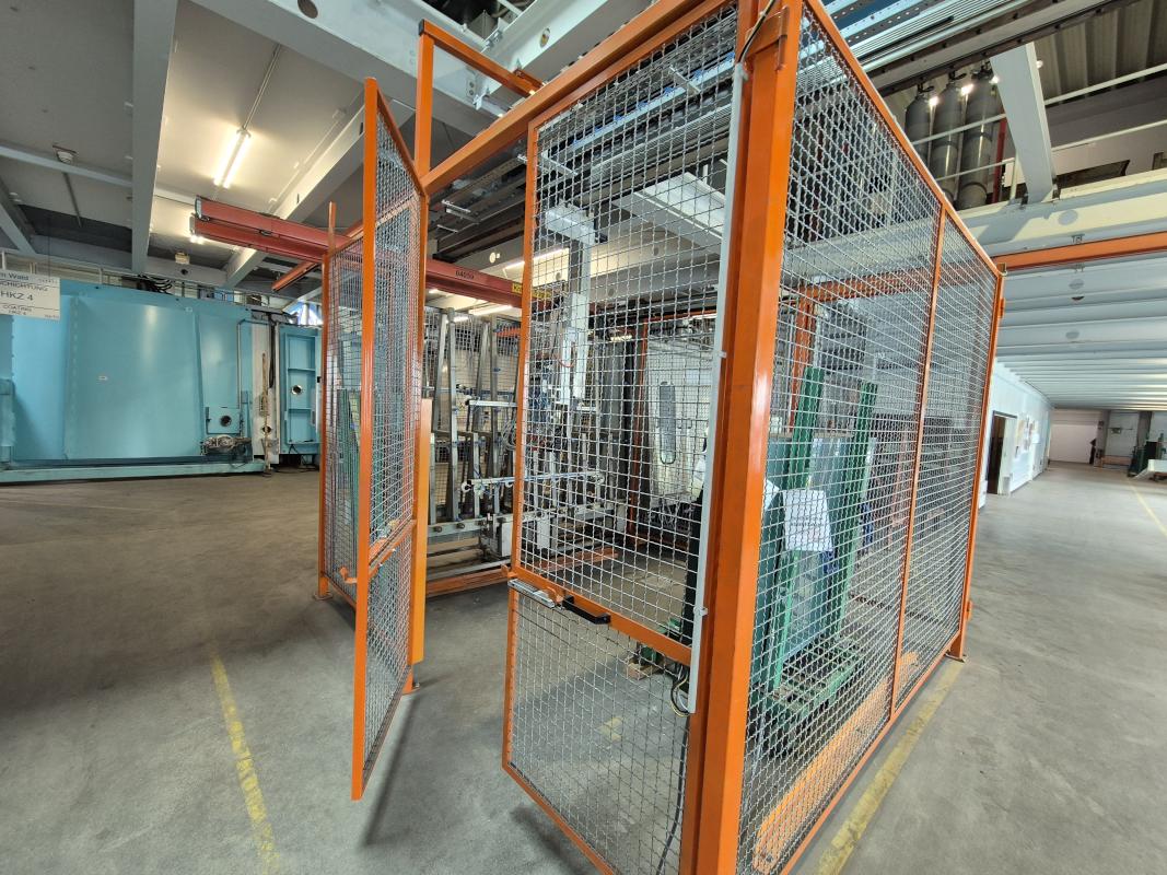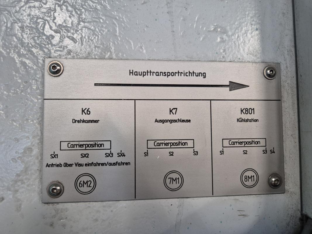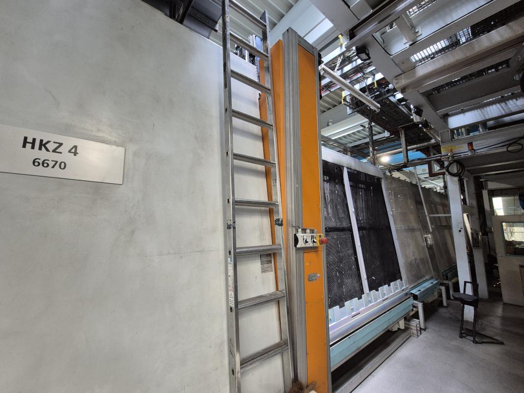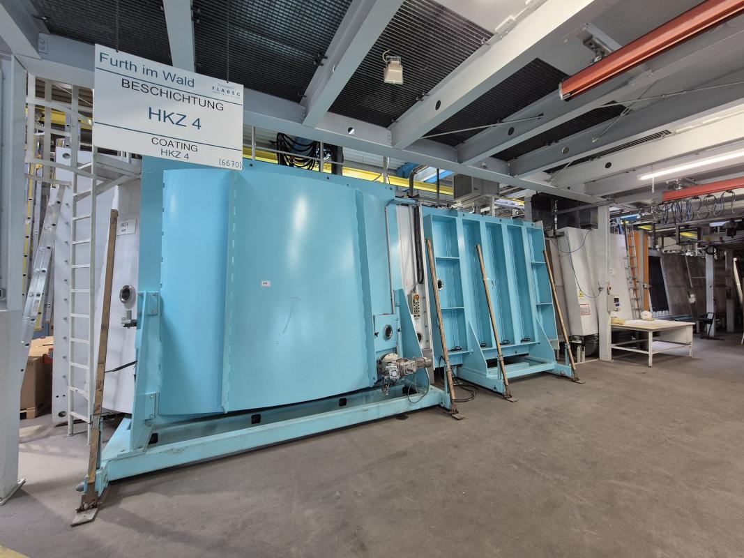 Make: ARDENNE DRESDEN, Model: GC 180 V/CR, Year of construction: 2003, Ser. no. 1-0846A, int. No. 6670, system no. 266.700 / 266.701 / 266.771 / 266.773 / 266.779 / 266.793 / 266.809 / 280.494, L/W approx. 41 x 6 m, H with platforms approx. 6,200 mm, cooling capacity approx. 950 kW, cooling water consumption approx. 120 m³/h, transmission reflection measuring system, ionisation system, twin cathode (performance enhancement), vacuum chamber K1 to K7, carrier transport system with return system K8, entrance airlock, intermediate chamber, rotary chamber, transfer chamber, process chamber, transfer chamber, rotary chamber, sputter section, pump section, heater horizontal / vertical, with gondola and carousel, 2 loading stations, cooling water circuit, process gas, pump sections, clean room with personnel and material airlock, approx. 30 control cabinets (upper level), control station, with computers, monitors, software with licences, transmission measuring device, optimisation in 2017, control station, office furniture equipment, server cabinet, int. no. WDEFIW913, workstation, manufactured by HP, Intel Core i2 processor, keyboard, mouse, 22" TFT monitor, manufactured by Samsung, type SyncMaster 22. Samsung, type SyncMaster 2243, handling robot, Fanuc, type M-710I, year 2019, system no. 236.529.000, with gripper arm, protective plexiglass housing, power source, manual control, flat glass washing and drying machine, vertical, Schraml, type Topclear Spezial / Super 13-26, year 2017, consisting of: Ser. no. 2106/17, system no. 266.776.000, washing and drying exclusively for flat glass panes, maximum height 1,600 mm in one pass, glass thicknesses from 3 - 12 mm, operating speed from 1 - 5 m/min, consisting of: Infeed module, washing machine, washing machine body with brushes, outfeed module, washing machine, fan housing with air filter, water basin with pumps, control panel, electrical cabinet, approx. 16 different steel cabinets on platform, accessories, spare parts