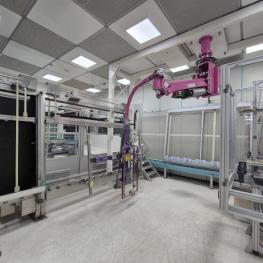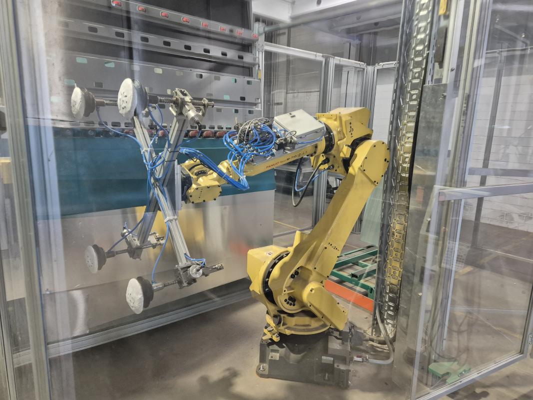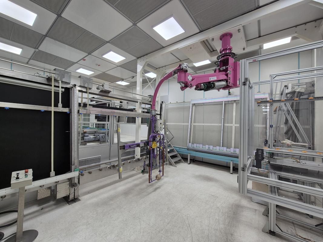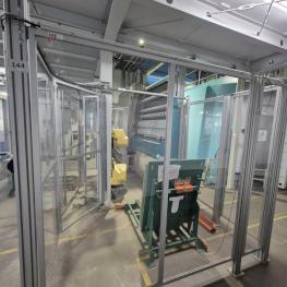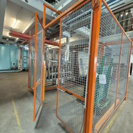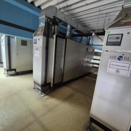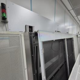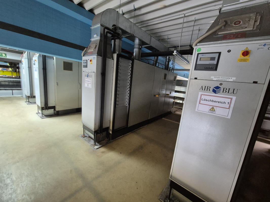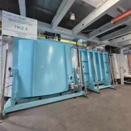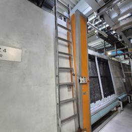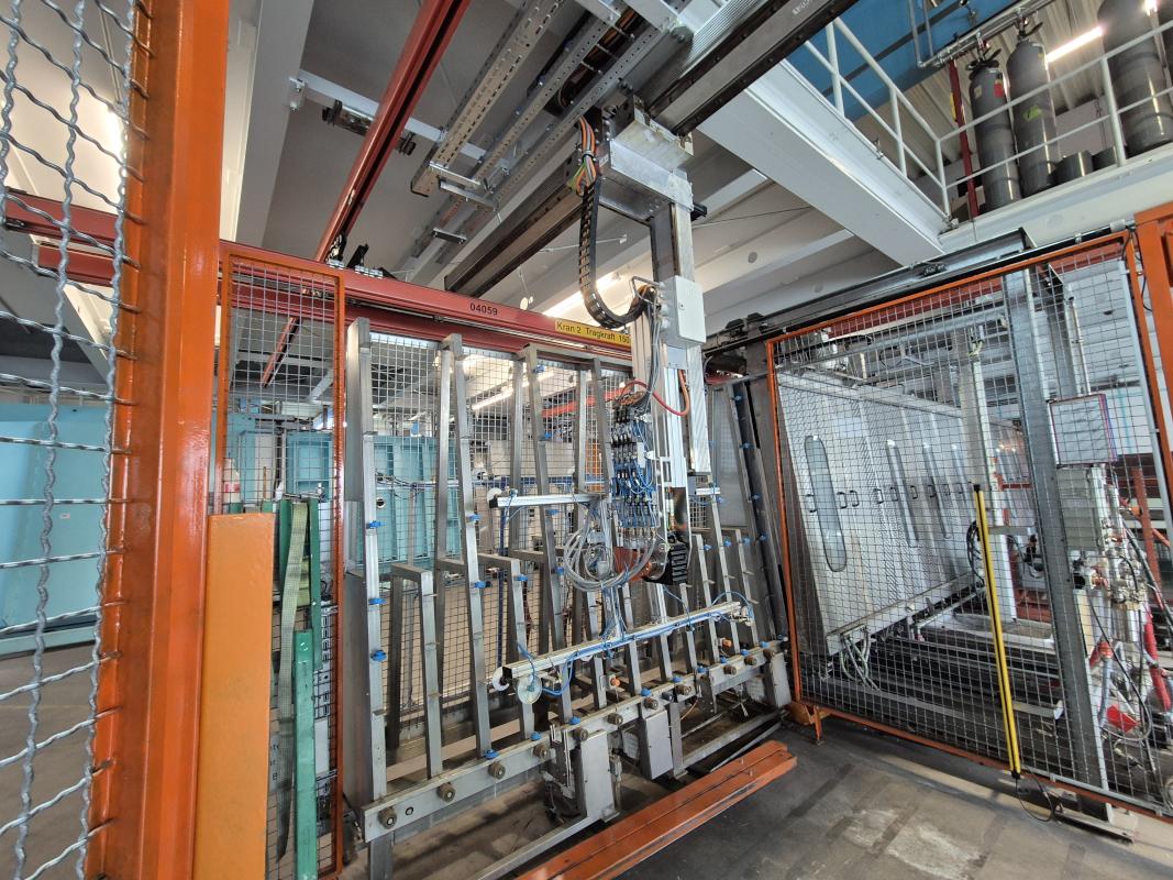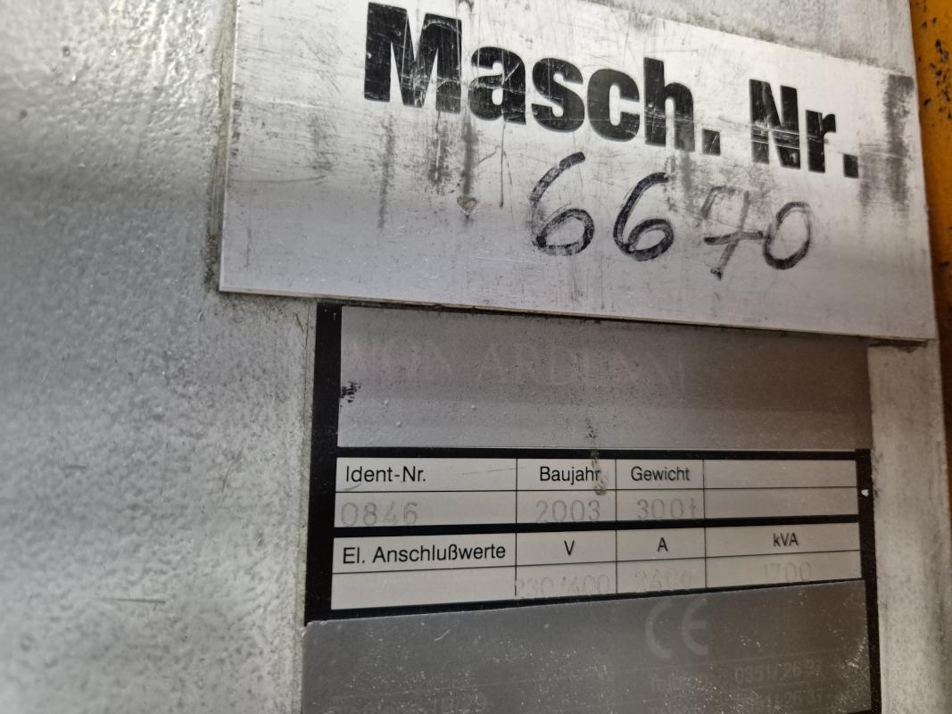 Make: ARDENNE DRESDEN, Model: GC 180 V/CR, Year of construction: 2003, Ser. no. 1-0846A, int. No. 6670, system no. 266.700 / 266.701 / 266.771 / 266.773 / 266.779 / 266.793 / 266.809 / 280.494, L/W approx. 41 x 6 m, H with platforms approx. 6,200 mm, cooling capacity approx. 950 kW, cooling water consumption approx. 120 m³/h, transmission reflection measuring system, ionisation system, twin cathode (performance enhancement), vacuum chamber K1 to K7, carrier transport system with return system K8, entrance airlock, intermediate chamber, rotary chamber, transfer chamber, process chamber, transfer chamber, rotary chamber, sputter section, pump section, heater horizontal / vertical, with gondola and carousel, 2 loading stations, cooling water circuit, process gas, pump sections, clean room with personnel and material airlock, approx. 30 control cabinets (upper level), control station, with computers, monitors, software with licences, transmission measuring device, optimisation in 2017, control station, office furniture equipment, server cabinet, int. no. WDEFIW913, workstation, manufactured by HP, Intel Core i2 processor, keyboard, mouse, 22" TFT monitor, manufactured by Samsung, type SyncMaster 22. Samsung, type SyncMaster 2243, handling robot, Fanuc, type M-710I, year 2019, system no. 236.529.000, with gripper arm, protective plexiglass housing, power source, manual control, flat glass washing and drying machine, vertical, Schraml, type Topclear Spezial / Super 13-26, year 2017, consisting of: Ser. no. 2106/17, system no. 266.776.000, washing and drying exclusively for flat glass panes, maximum height 1,600 mm in one pass, glass thicknesses from 3 - 12 mm, operating speed from 1 - 5 m/min, consisting of: Infeed module, washing machine, washing machine body with brushes, outfeed module, washing machine, fan housing with air filter, water basin with pumps, control panel, electrical cabinet, approx. 16 different steel cabinets on platform, accessories, spare parts
