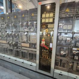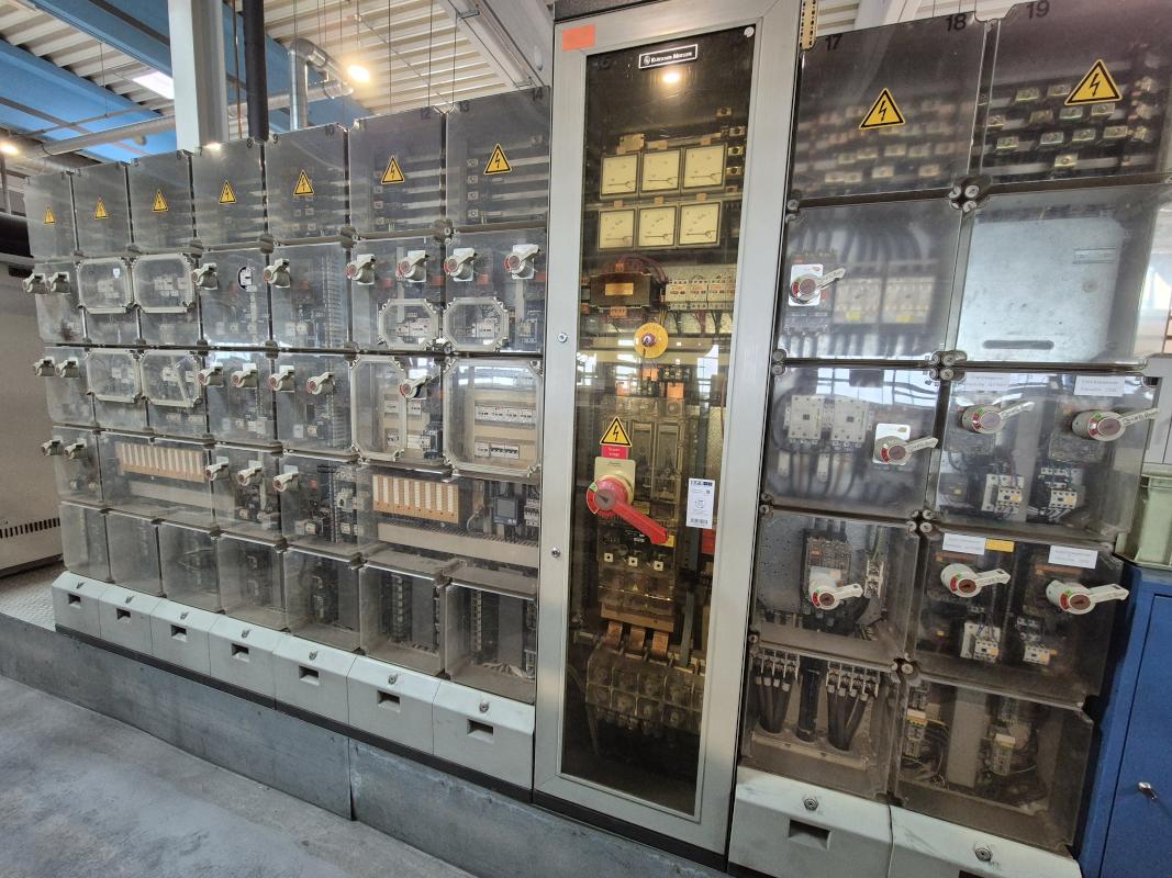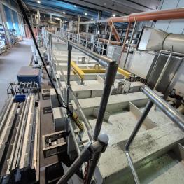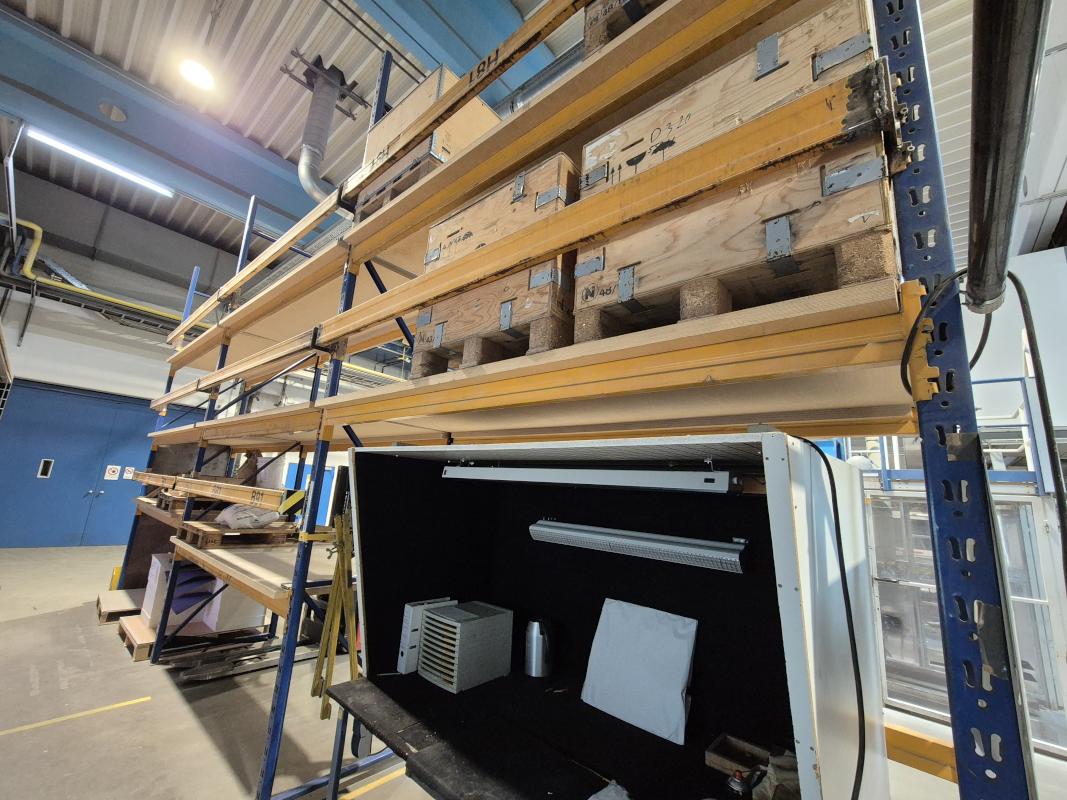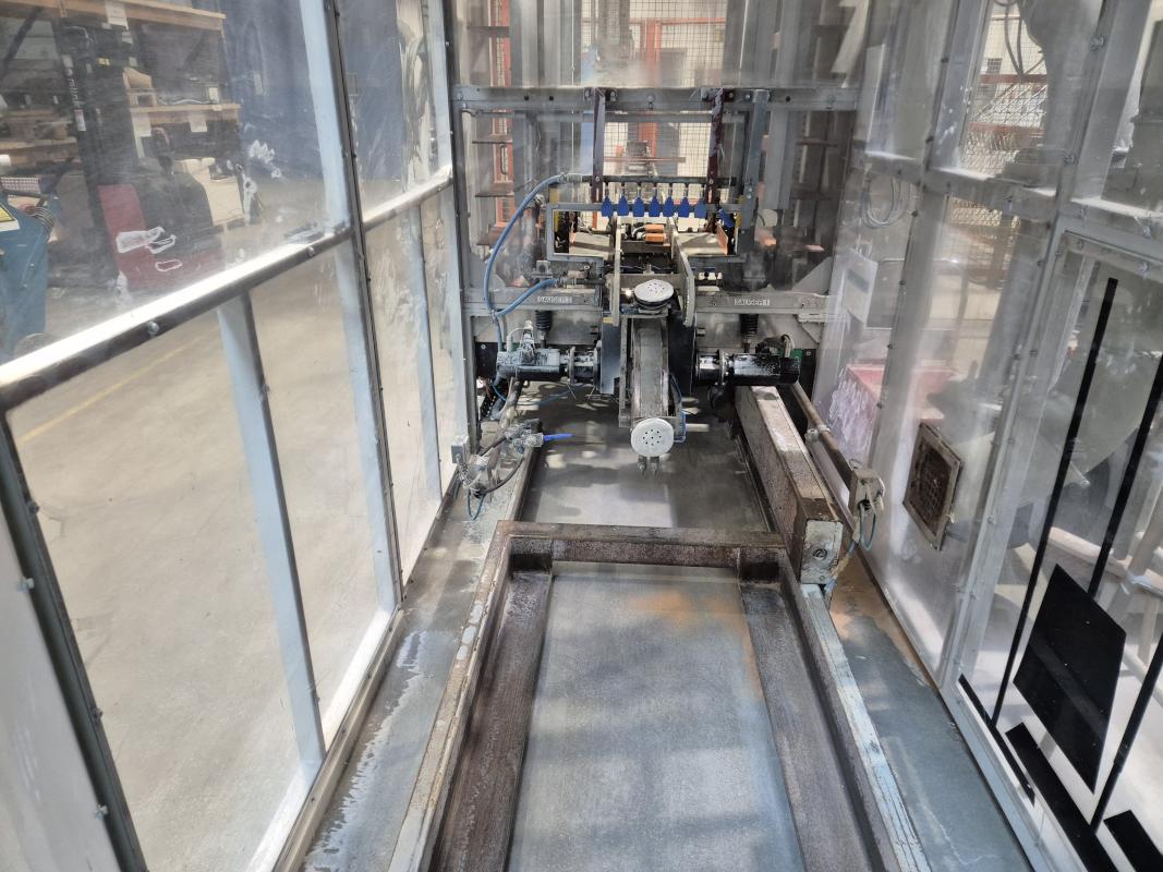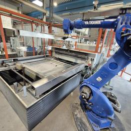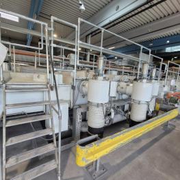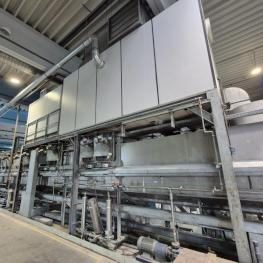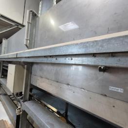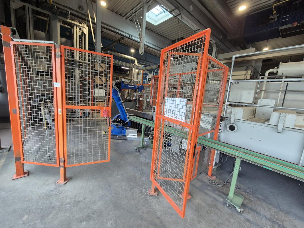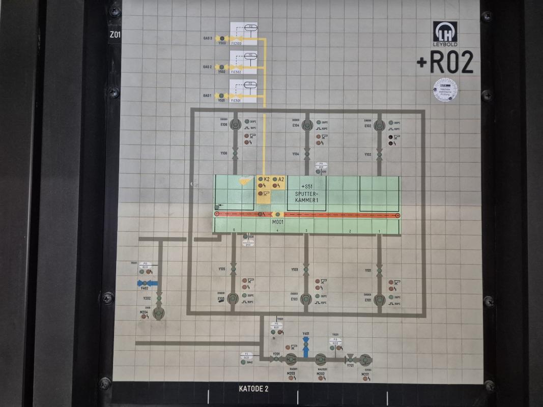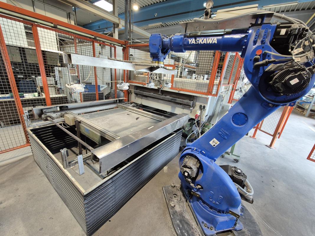 Year of construction: 1993, int. no. 6651, glass size max. approx. 2,200 x 1,630 mm, glass thickness max. approx. 67 mm, total length approx. 35 m, consisting of: Glimmer chamber, 4 transfer chambers, sputter chamber, lock chamber, buffer chamber, high-pressure cleaning, brush cleaning system, 19 chambers, 3 coating stations chrome (mirror), Teref (blue mirror), coating capacity approx. 143 m³/h, switch and control cabinets, system control, glass automation with gantry robot with gripper frame, manufactured by Zollern, year 1994, ser.No. 101, travel distance approx. 11 m, handling robot, with gripper system, year 2005, robot, Yaskawa, type YR-MS-165, year 2016, serial no. R16454-944-3, workpiece automation, lifting tables, accessory units, water treatment system, release agent suction system