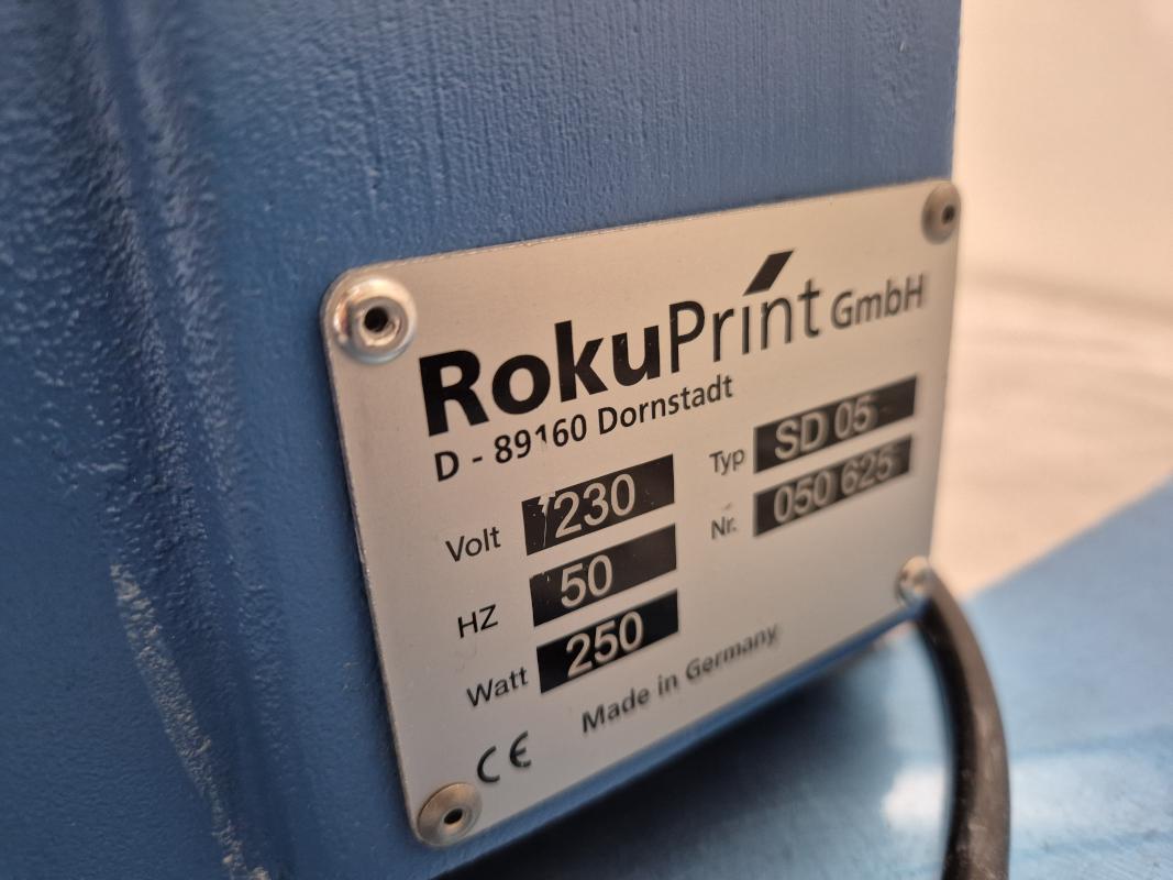 Make: ROKUPRINT, Model: SD05, Year of construction: ca. 2017, Ser. no. 050625, working width approx. 350 x 260 mm, work table, approx. 800 x 800 mm, underbody, stand for protocol holder, light source: XP-Pen, type CP A3 LED Light Box