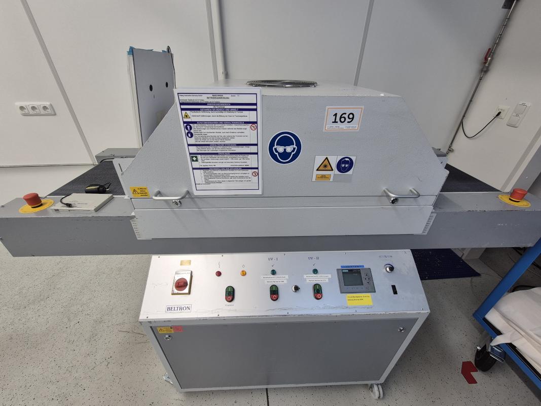 Make: BELTRON, 2 UV units, Siemens display, type Logo TDE, infinitely variable power controller, chain conveyor, accessories: light source, LED drawing tracing pad