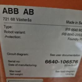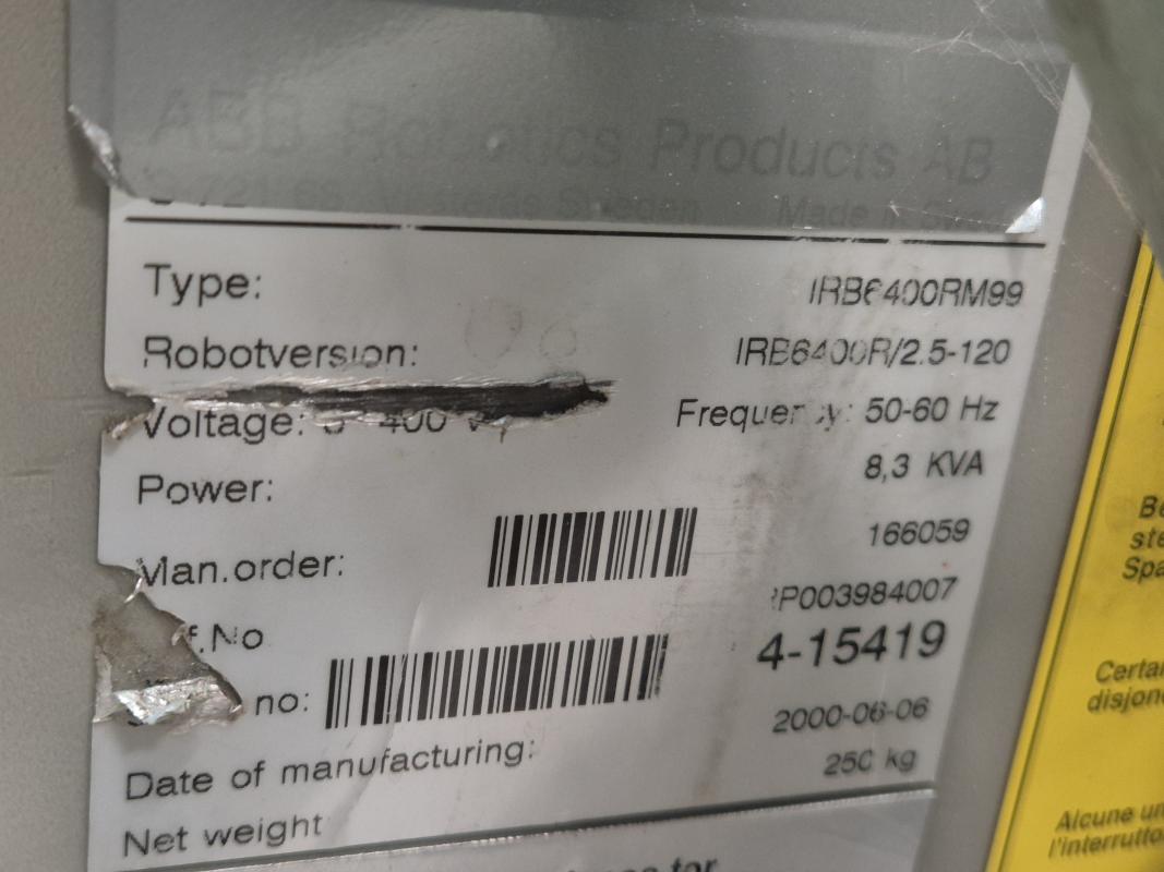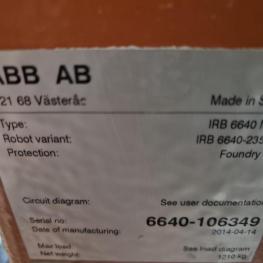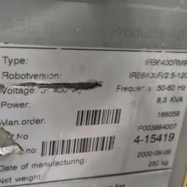 Make: ABB, Model: IRB 6400, Robot control IRC5 M2004, Ser. no. 6640-106349, 6640-106576, 1 robot ABB type IRB 6400 RM99, year 2000, 2 operator terminals