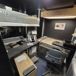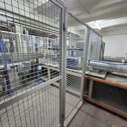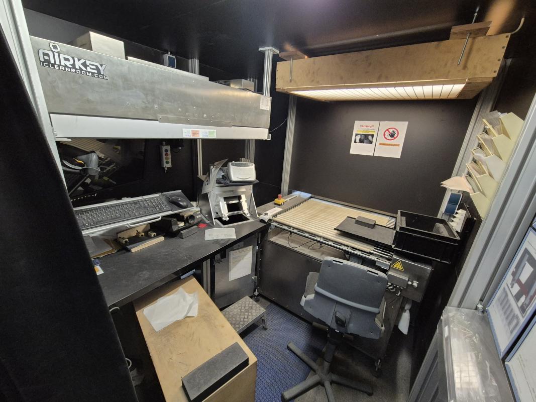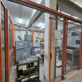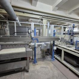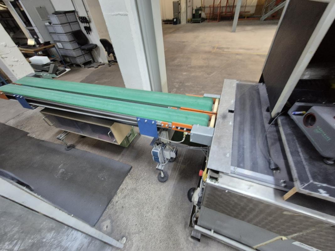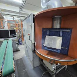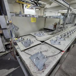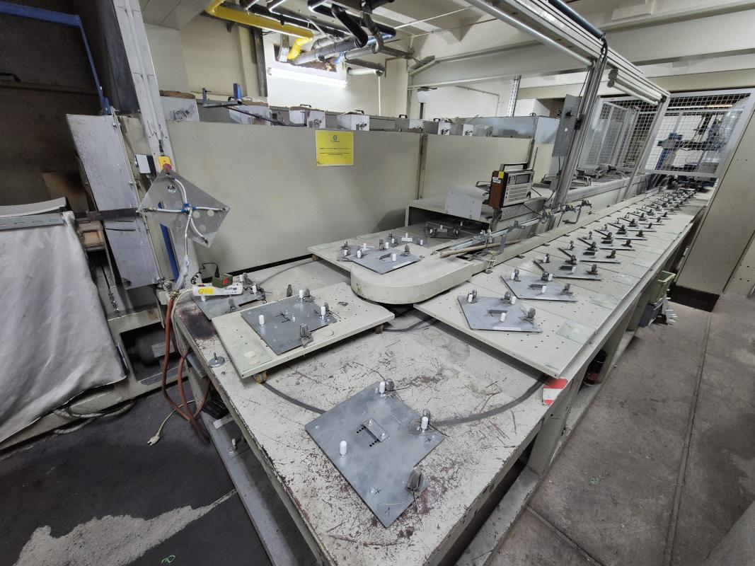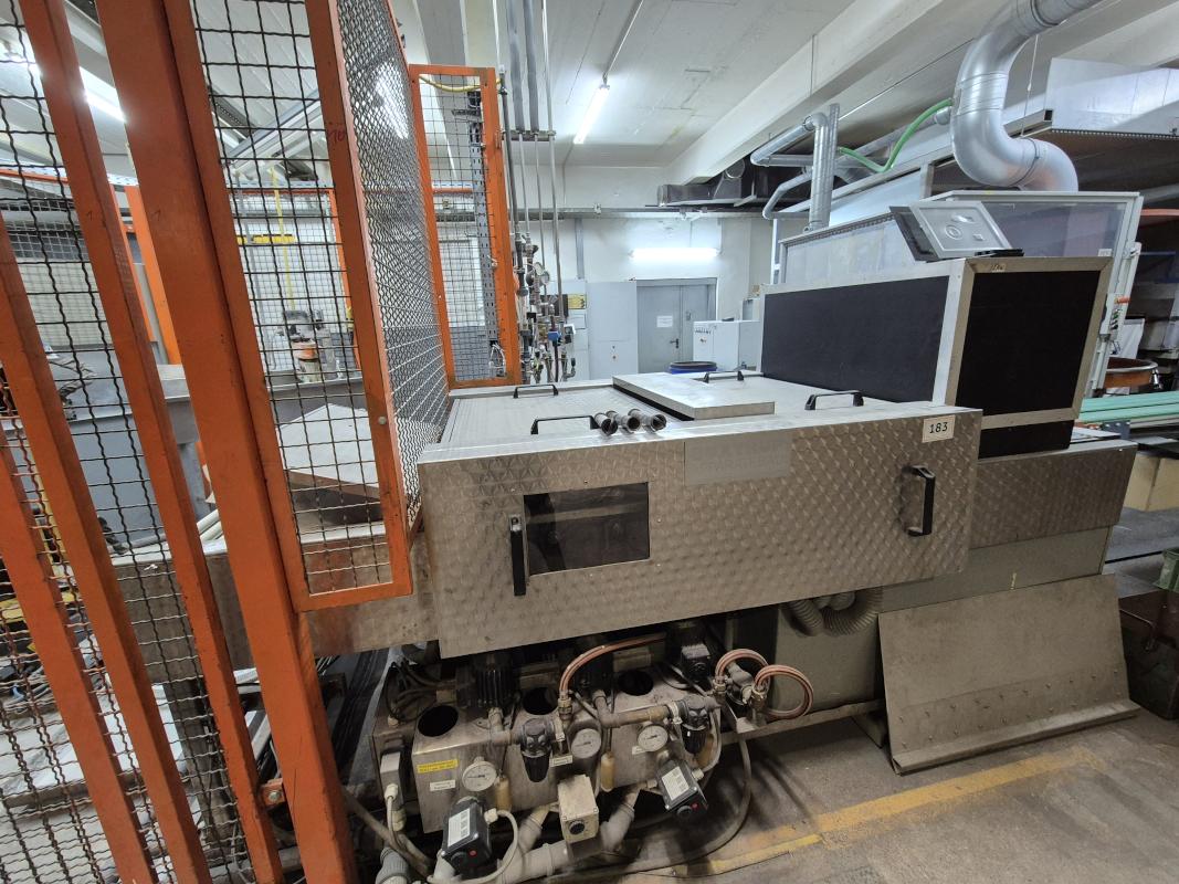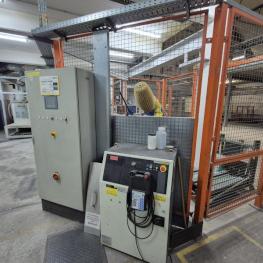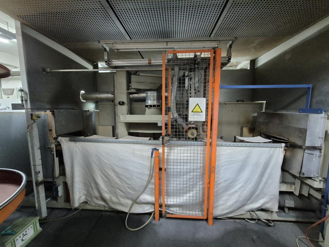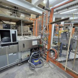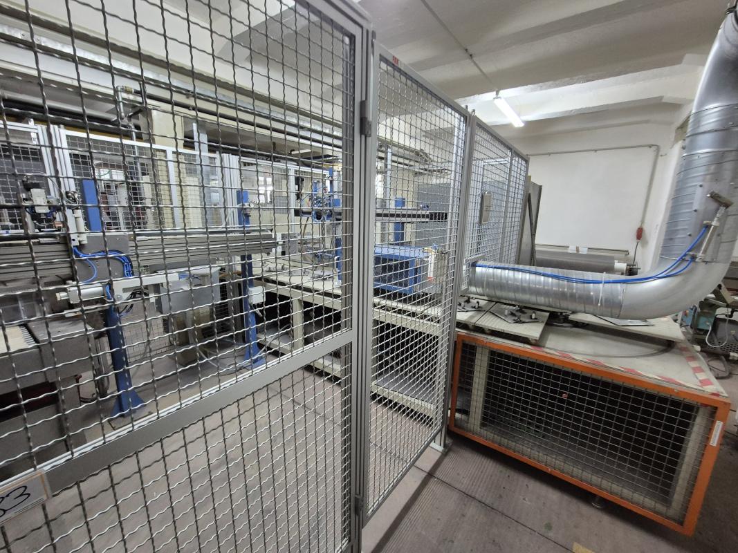 consisting of: Robot, Fanuc M-20IA, robot control R-30iA, 1 seaming station, 1 Buxtrup WH800-5-130 continuous washing machine, year of manufacture: 2006, serial no. 300514, throughput width 800 mm, Quallyspray release agent applicator, mould cleaning, continuous furnace, with 30 mould slides, approx. 100 bending moulds, circulating cooling belt, cleaning and blow-off station, automation, test cabin