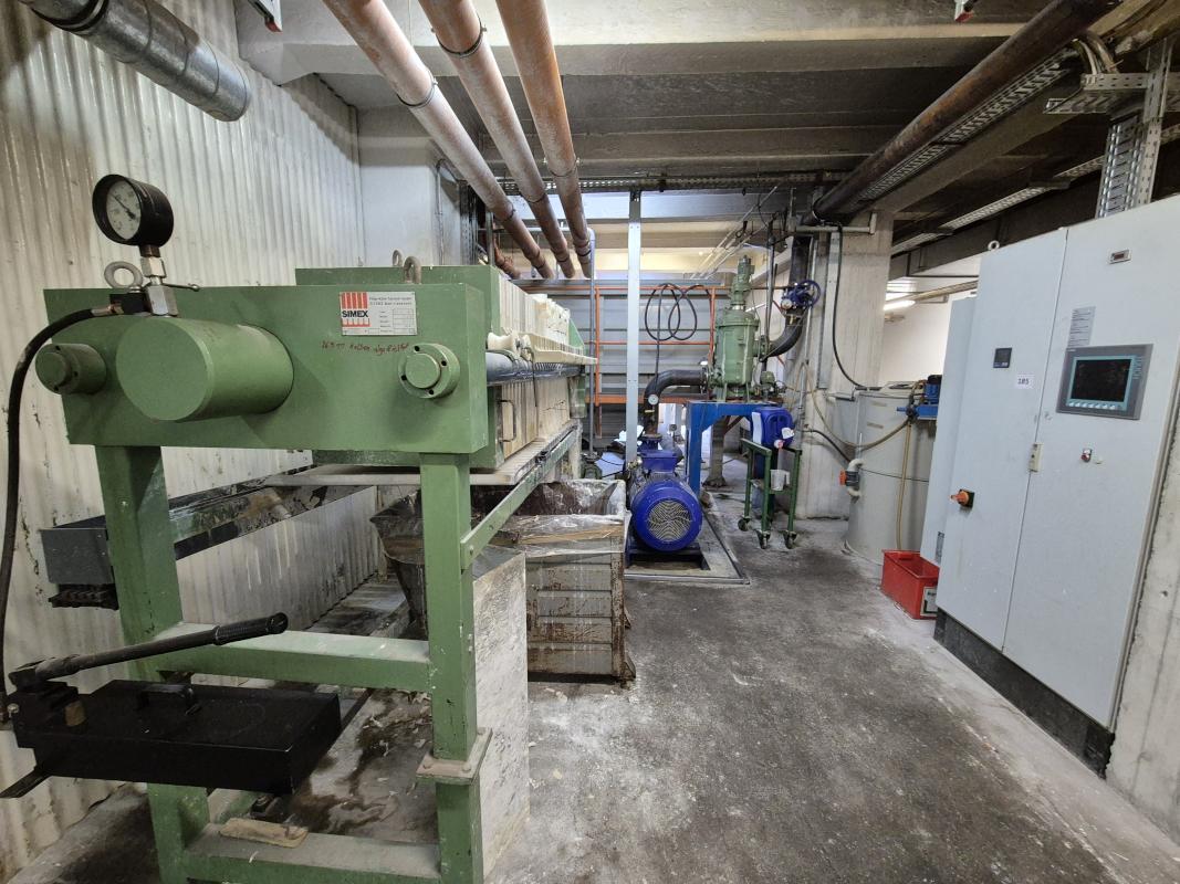 System control, Siemens, Simatic Panel Touch display, 1x multi-chamber water tank, 1x Simex SPK63 filter chamber press, year of manufacture: 1988, closing pressure 250 bar, various pipework, pump systems