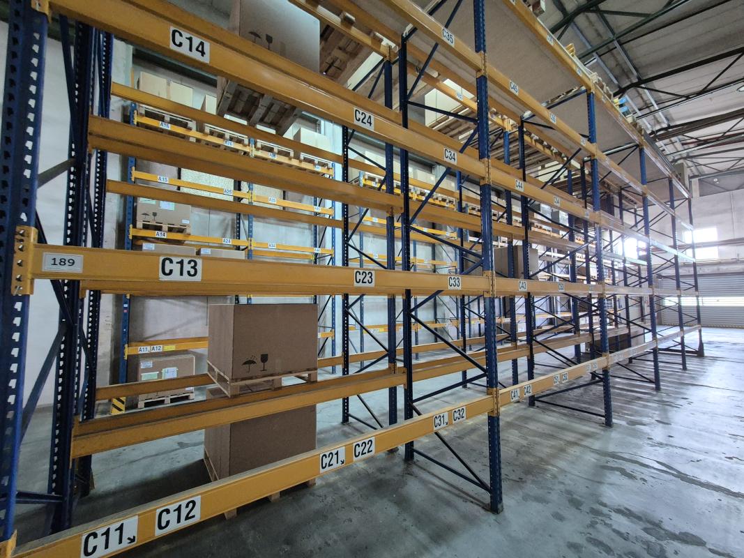 Make: JUNGHEINRICH, Model: MP, Year of construction: 1981, Plug-in system, L approx. 2,700 mm, max. bay load 8,000 kg, shelf height 5,100 mm, consisting of: 12 uprights, 5 levels each, without contents