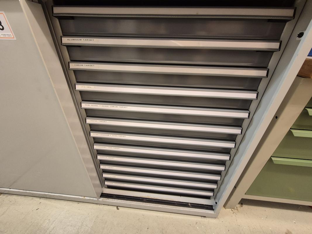 Make: FAMI, 24 pull-outs, 2 sliding doors, lockable, light grey, without contents