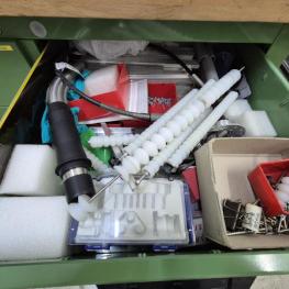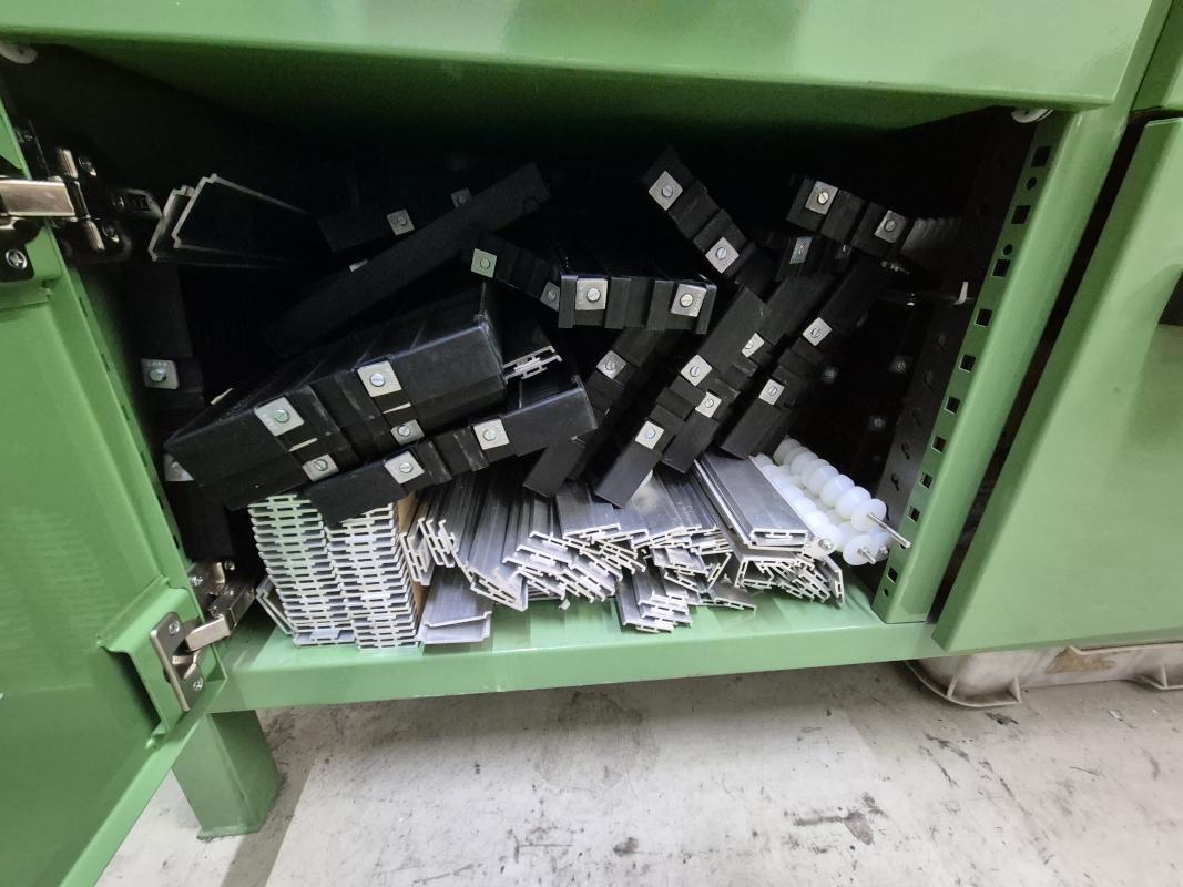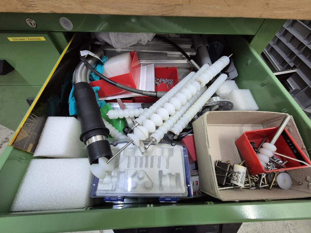 approx. 1,400 x 700 mm, small 2-door steel cabinet, various accessories and spare parts Miele washing machine