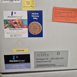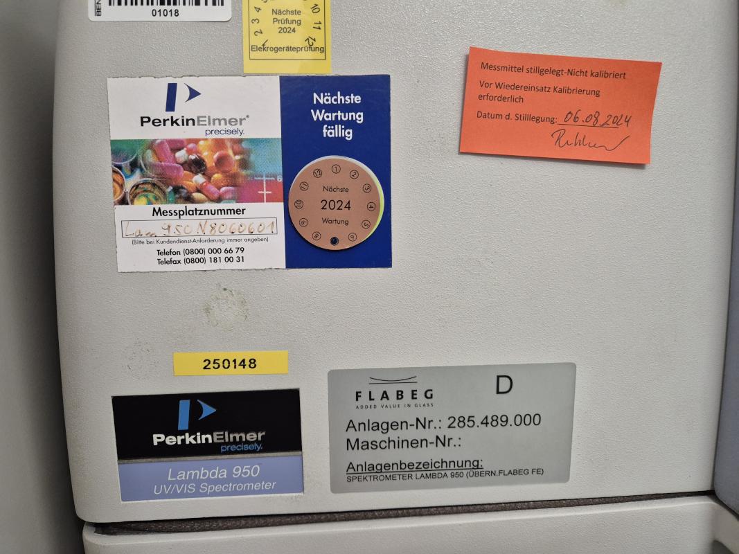 Make: PERKIN ELMER, Model: Lamba 950 UV/VIS Spektrometer, PC, made by Dell, TFT monitor, UPS, made by MGE, STD detector module,