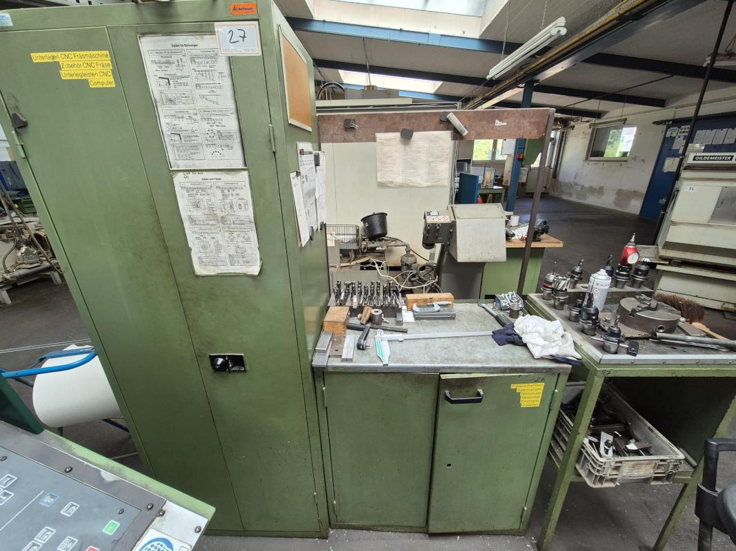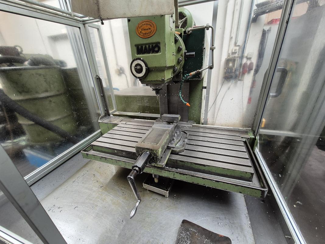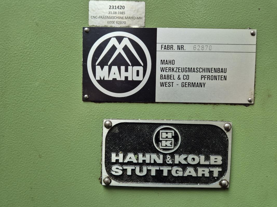 Make: MAHO, Model: MH600E, Year of construction: 1985, Ser. no. 62870, control unit, table approx. 1,000 x 400 mm, protective housing, control unit, tool holder SK 40, storage cabinet, metal, 2-door, approx. 800 x 500 x 2,000 mm, storage cabinet, metal, 2-door, approx. 900 x 500 x 1,000 mm, storage rack, metal, 2 levels, contents: milling cutters, various accessories