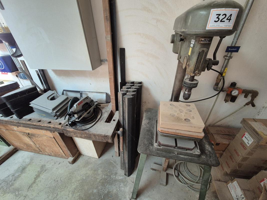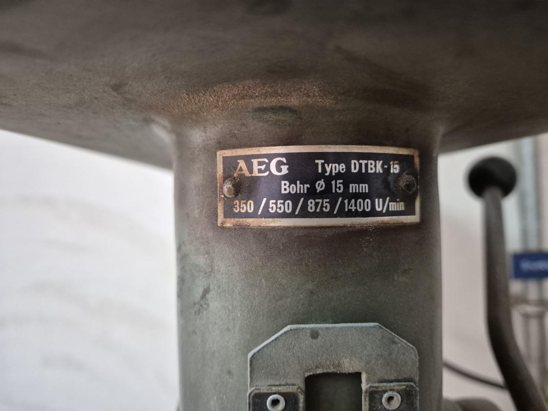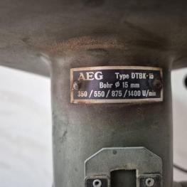 Make: AEG, Model: DTBK-15, with substructure, quill stroke 100 mm, drilling Ø 15 mm, max. speed 1400 rpm.