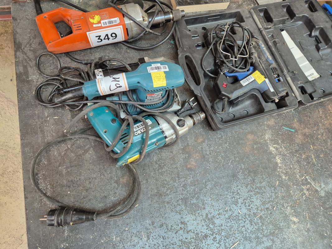 1x drill, make Metabo, 1x orbital sander, make Makita, type B03700, 1x impact drill, make Fein, type ASS648, 1x hot glue gun, 1x sheet metal cutter, make Draco