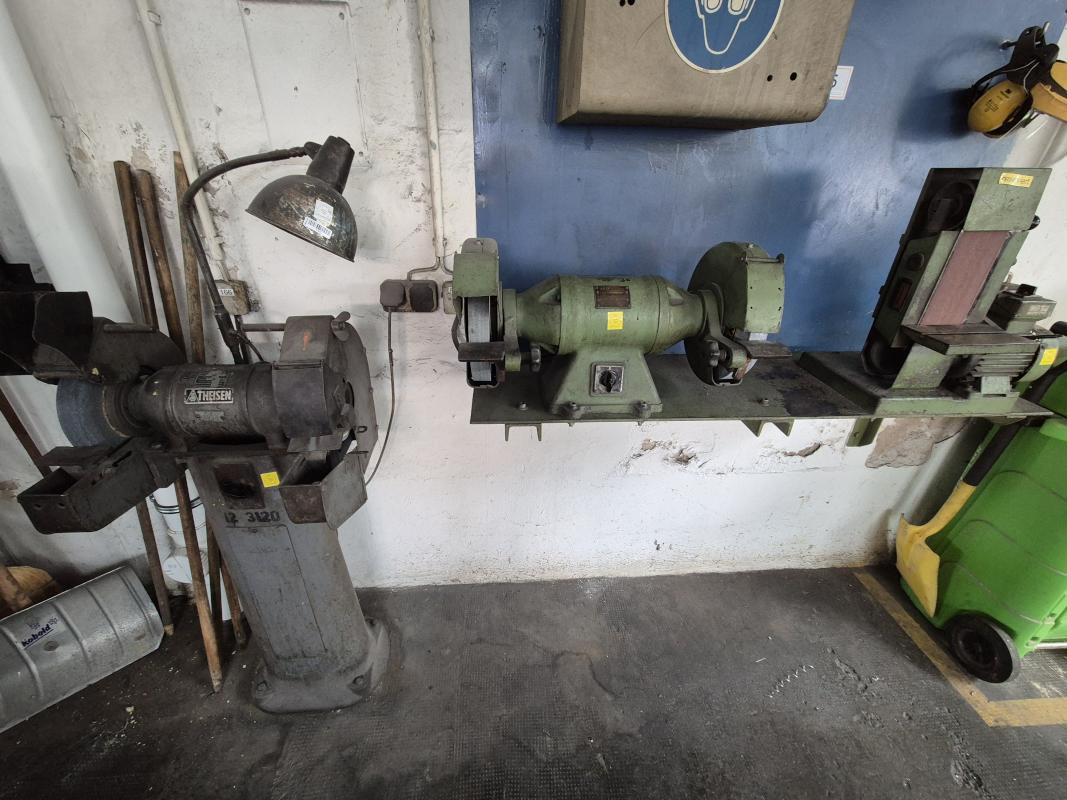 1x Theisen, type DOS-300, built 1933, serial no. 176811, grinding disc Ø 300 mm, 1x AEG, type DWS 301-1100, grinding disc Ø 300 mm, 1x belt grinder, Hommel, type BS75