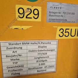 Make: JUNGHEINRICH, Model: JE120, Load capacity 1,000 kg
