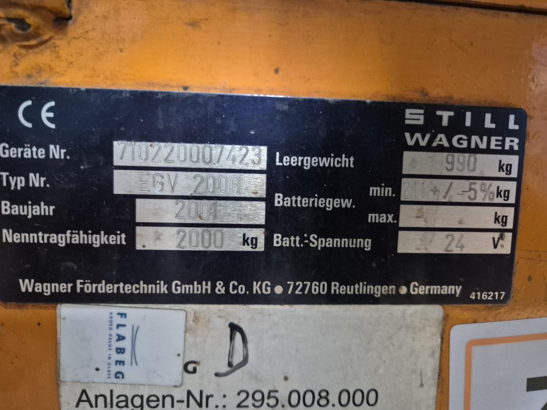 Make: STILL, Model: EGV2000, Year of construction: 2001, Serial no. 710220007423, load capacity 2,000 kg