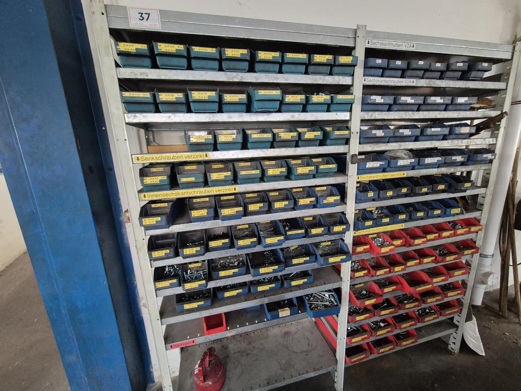Metal, plug-in system, 2 bays, shelf width approx. 2,000 mm, upright height approx. 2,000 mm, D approx. 400 mm, 10 levels, contents: DIN screws
