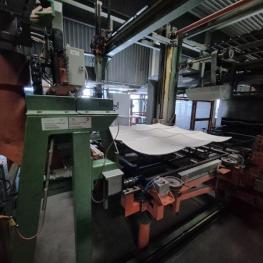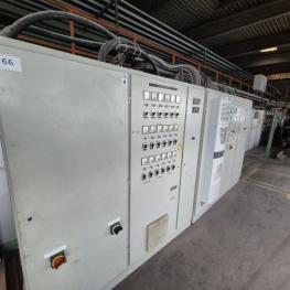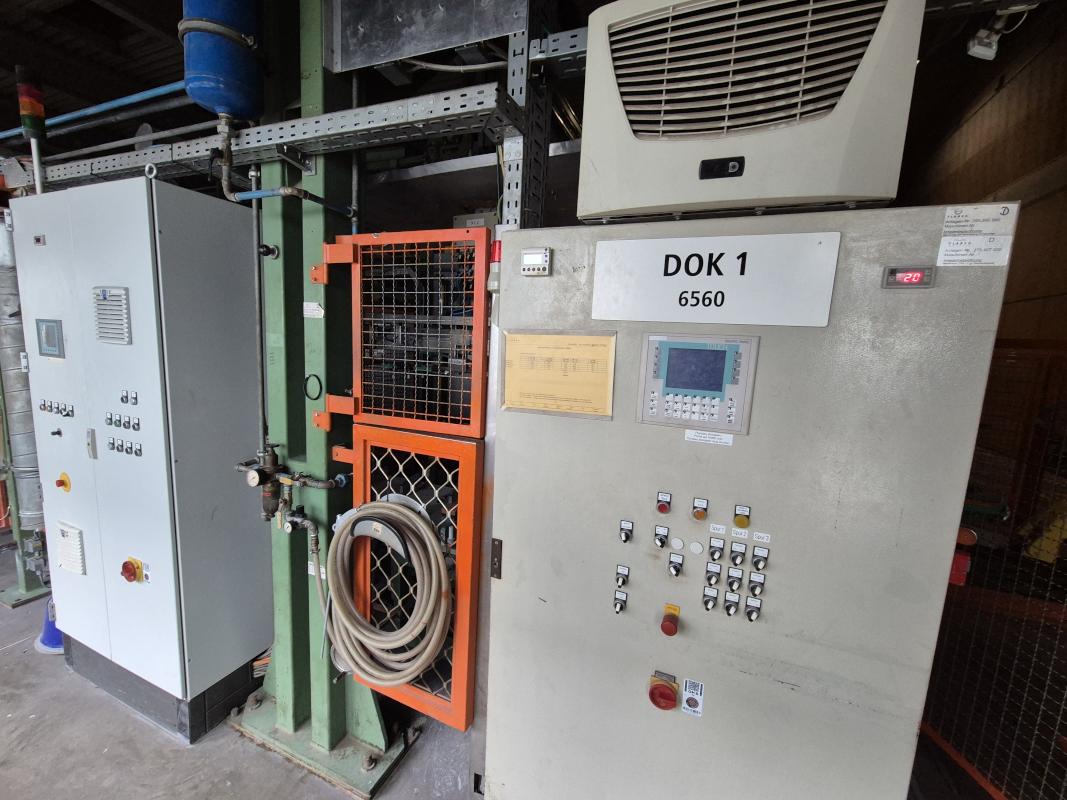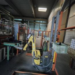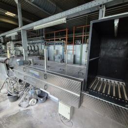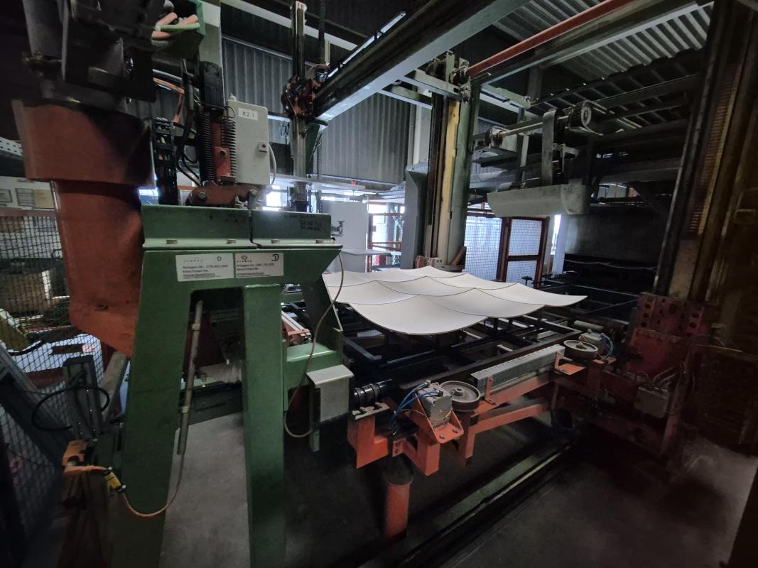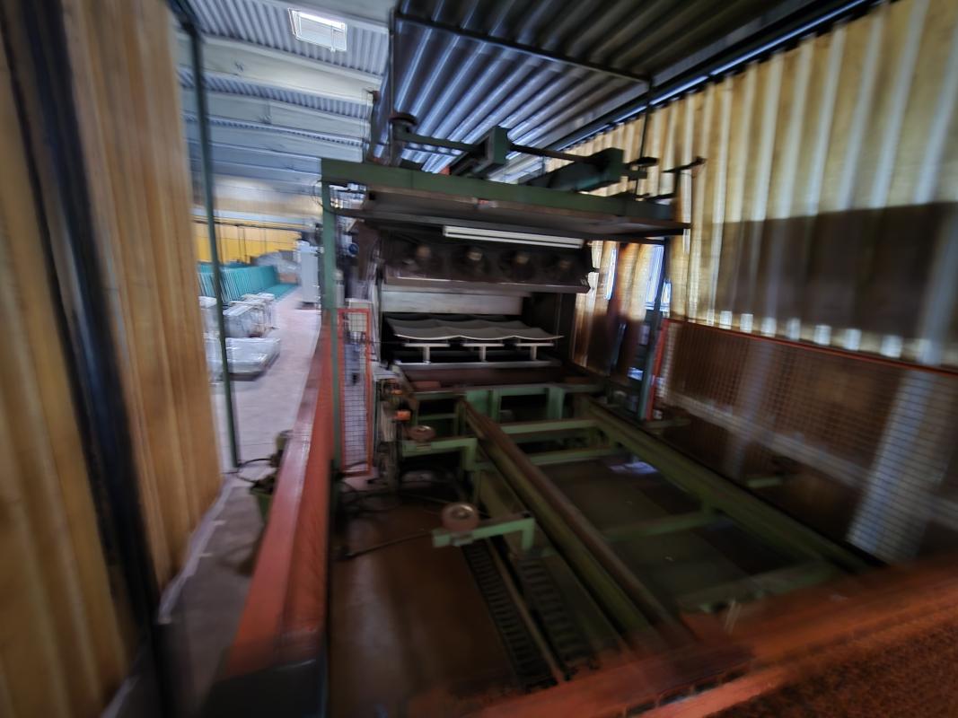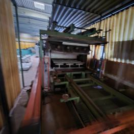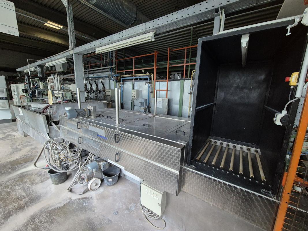 Year of construction: 1990-2007, consisting of: Glass feeder, seaming station for rectangular spherical caps (1990/1991), 4 chamfering units, continuous washing machine, BUXTRUP, type WH 650-3 (2003), glass alignment station (1992), release agent application station, mould cleaning system, exhaust air filter system, ESTA, Ser.No. 07001245, built 2007, volume flow 13,200 m³/h, filter area 144 m², continuous furnace, (heating medium gas / electricity) L approx. 33 m, frame return, incl. 23 frame racks, glass discharge, robot, Fanuc, handling gantries, conveyor belts, safety equipment, switch and control cabinets