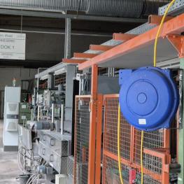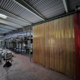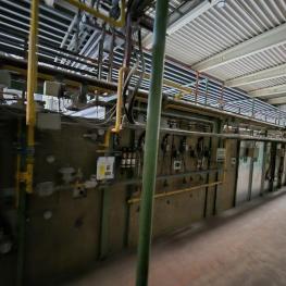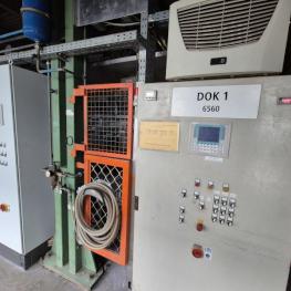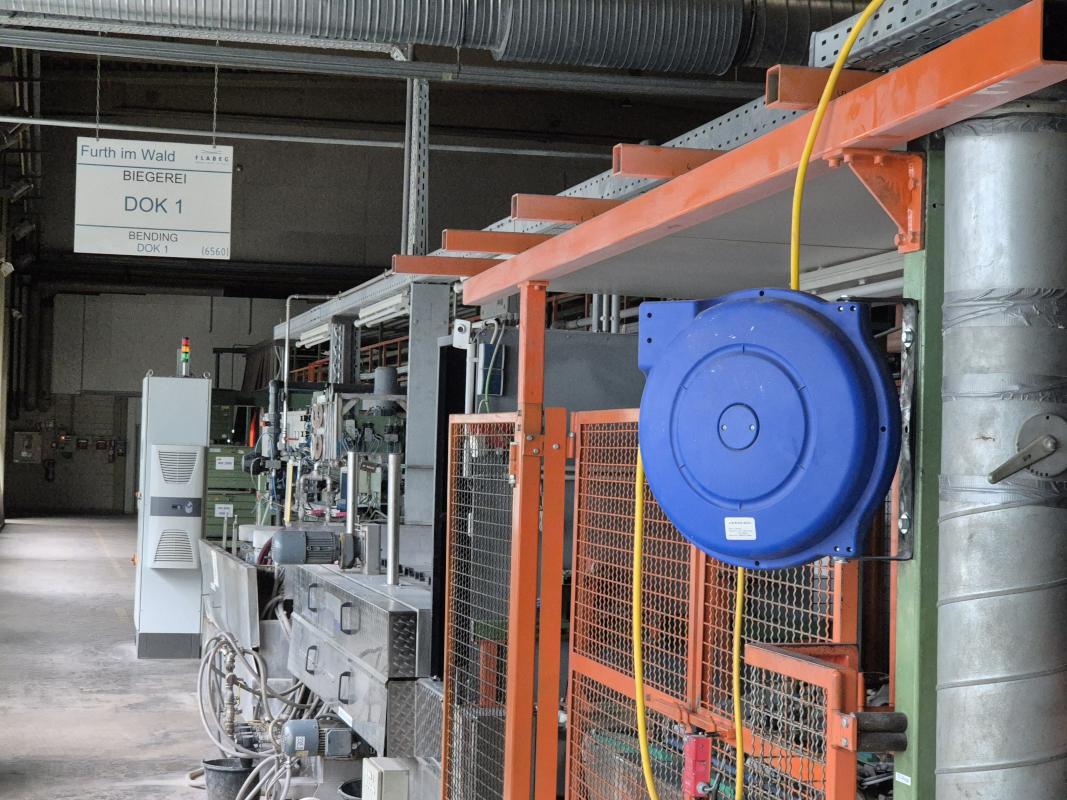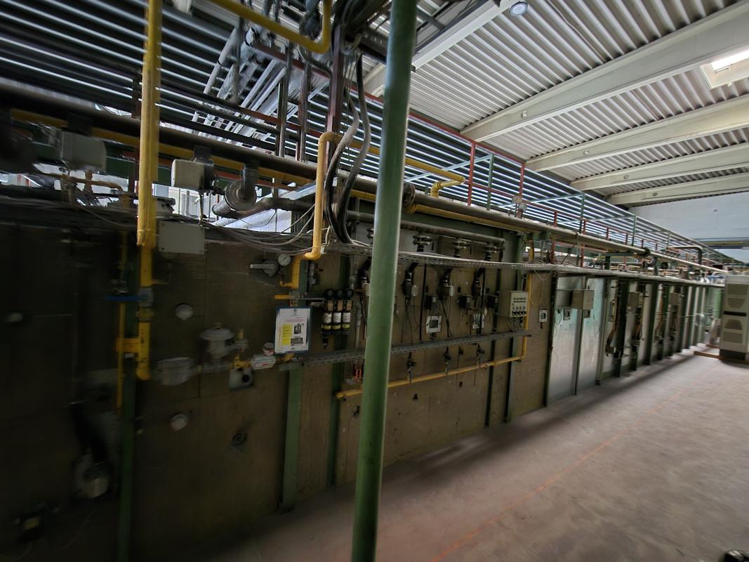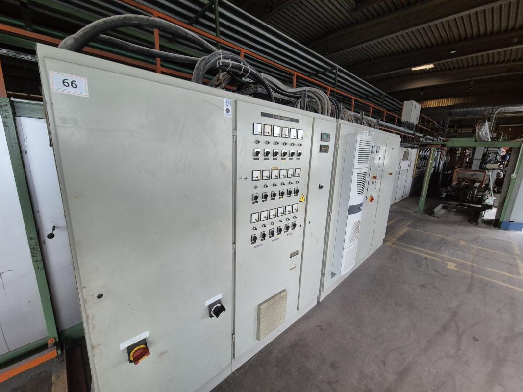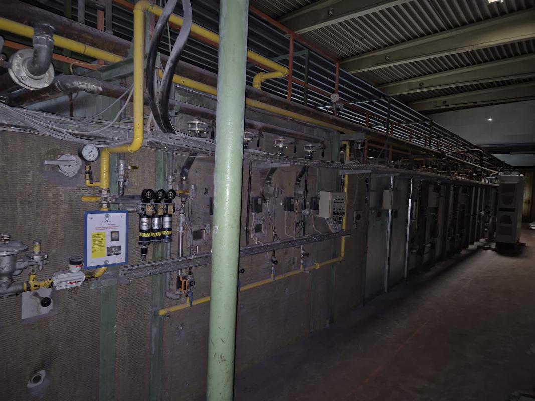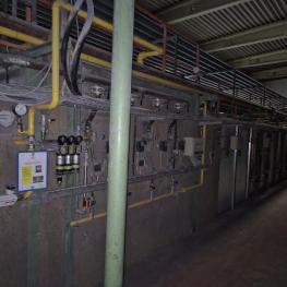 Year of construction: 1990-2007, consisting of: Glass feeder, seaming station for rectangular spherical caps (1990/1991), 4 chamfering units, continuous washing machine, BUXTRUP, type WH 650-3 (2003), glass alignment station (1992), release agent application station, mould cleaning system, exhaust air filter system, ESTA, Ser.No. 07001245, built 2007, volume flow 13,200 m³/h, filter area 144 m², continuous furnace, (heating medium gas / electricity) L approx. 33 m, frame return, incl. 23 frame racks, glass discharge, robot, Fanuc, handling gantries, conveyor belts, safety equipment, switch and control cabinets