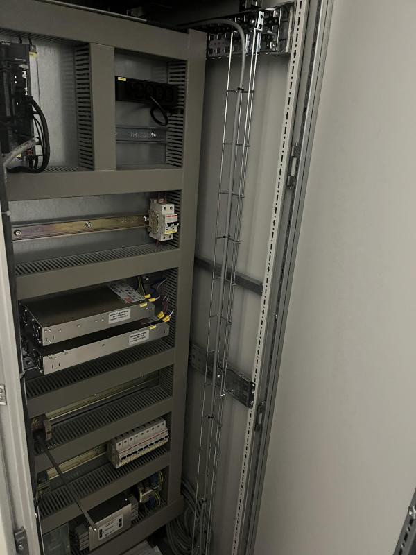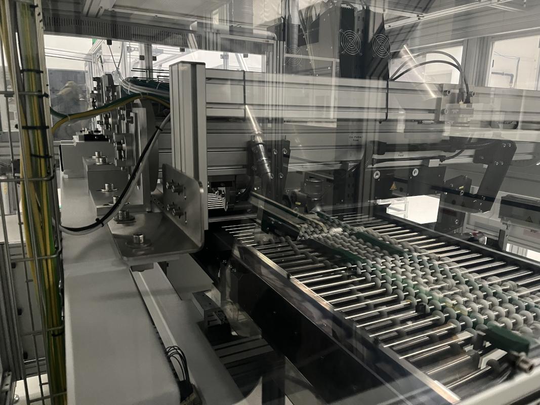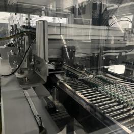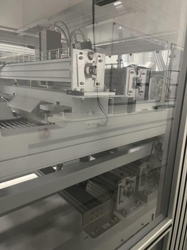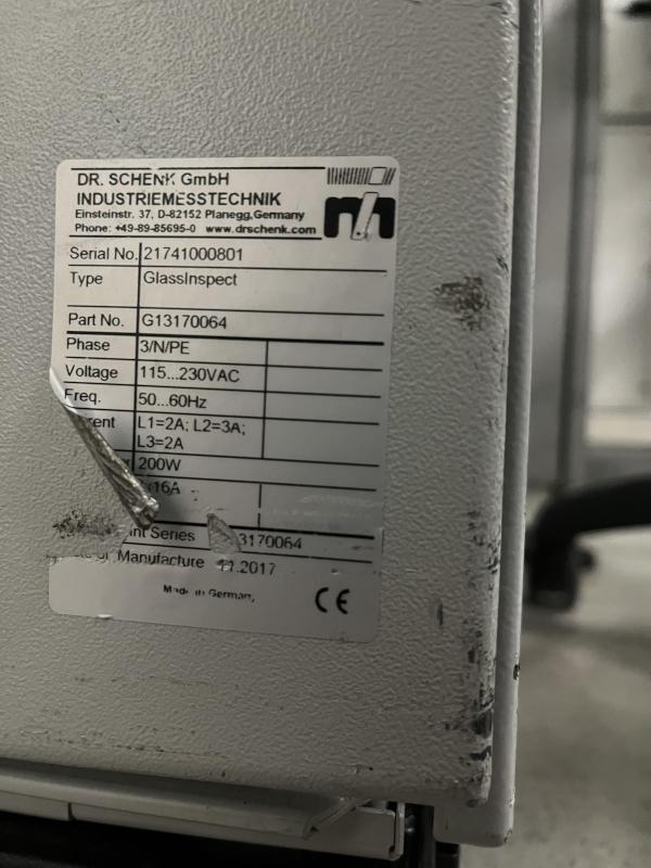 Make: DR. SCHENK, Model: Glass Inspect, Year of construction: 2019, Inventory No. 291.004.000, including green/yellow/red glass stacking unit for quality control, industrial robot, Fanuc, type M-10ID12, control cabinet, R-30iBPlus system, control element