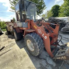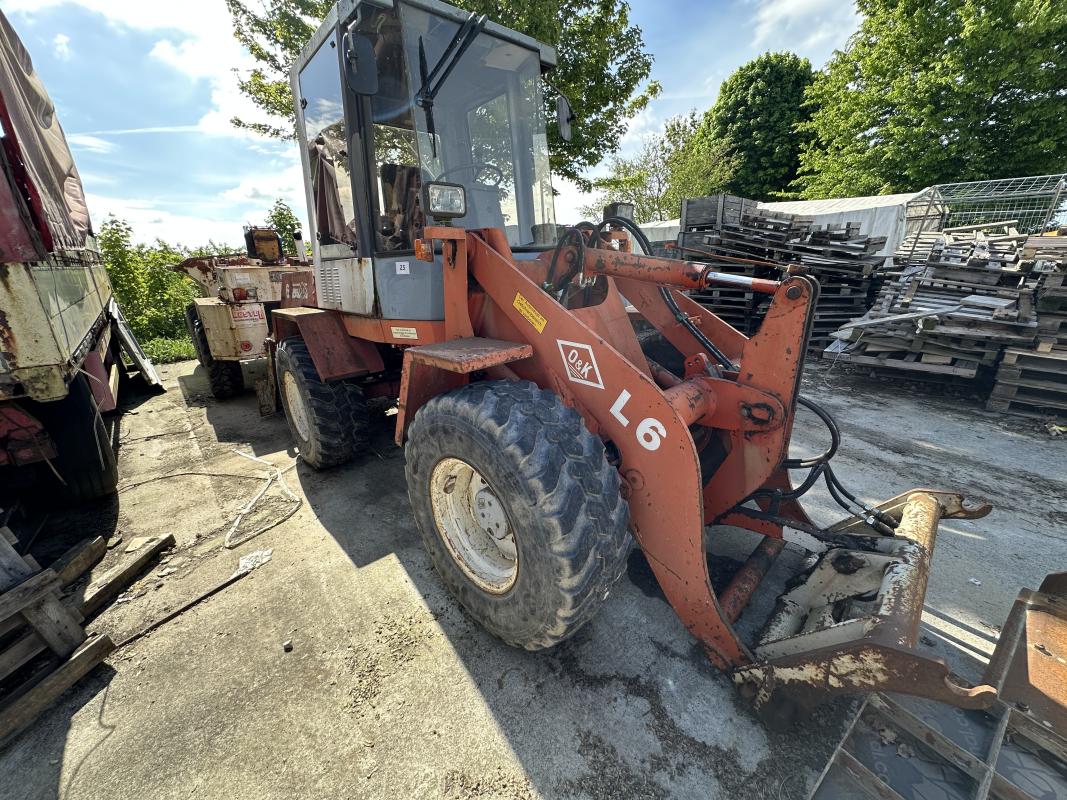 Make: O&K, Model: L6-3, Year of construction: 1994, Diesel, Ident. No. 277393, 37 kW, gross vehicle weight 5,800 kg, permissible front/rear axle load 3,500 kg. Equipment: ditch cleaning bucket, pallet fork. Damage/defects: heavy rust, not fully functional, hydraulic lever defective.