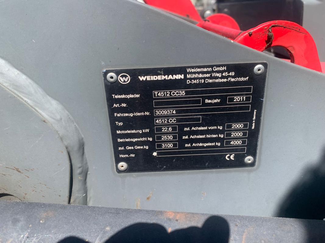 Make: WEIDEMANN, Model: T 4512 CC35, Year of construction: 2011, Diesel, Ident. No. 3009374, 22.6 kW, max. axle load front/rear 2,000 kg, max. gross weight 3,100 kg, operating hours approx. 300