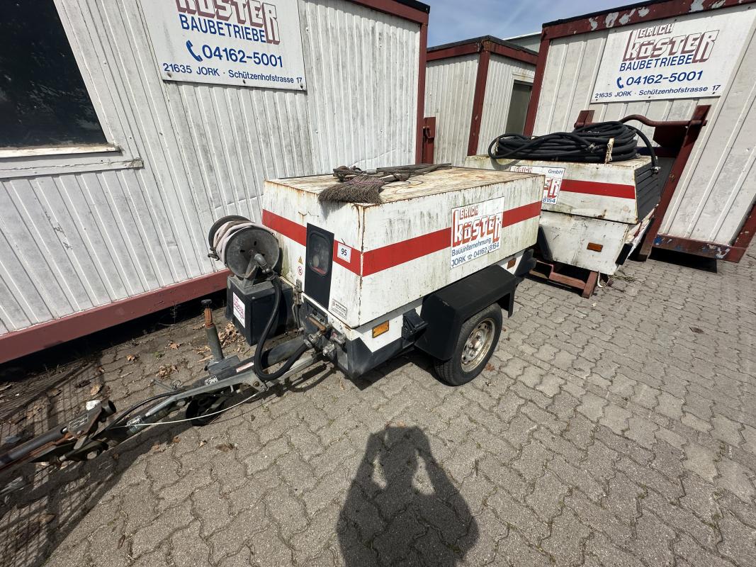 Make: KAESER, Model: M32 G, Year of construction: 1996, on a single-axle chassis, operating hours 2,955, hose reel, length 3,495 mm. Damage/defects: heavy rust.