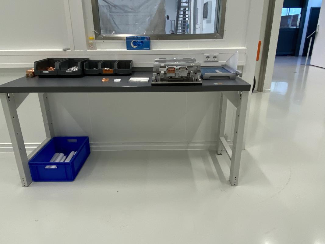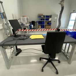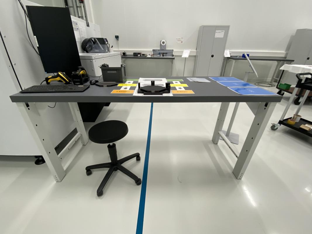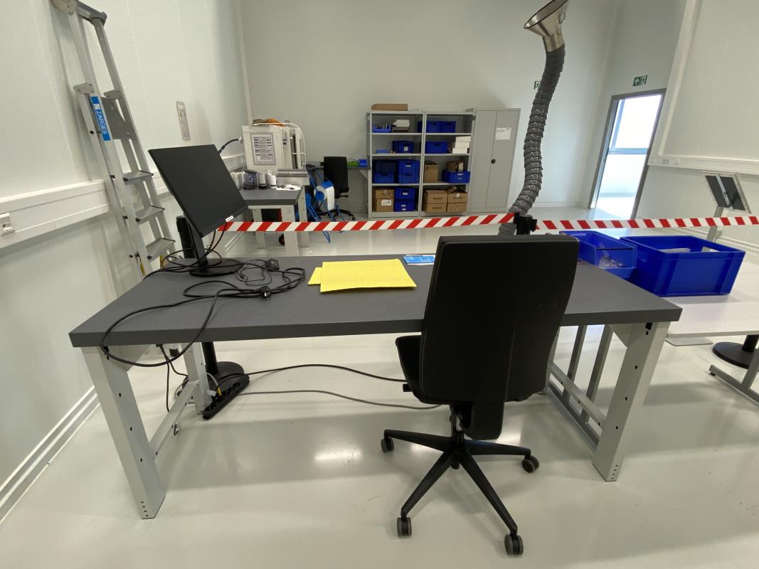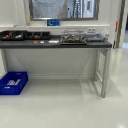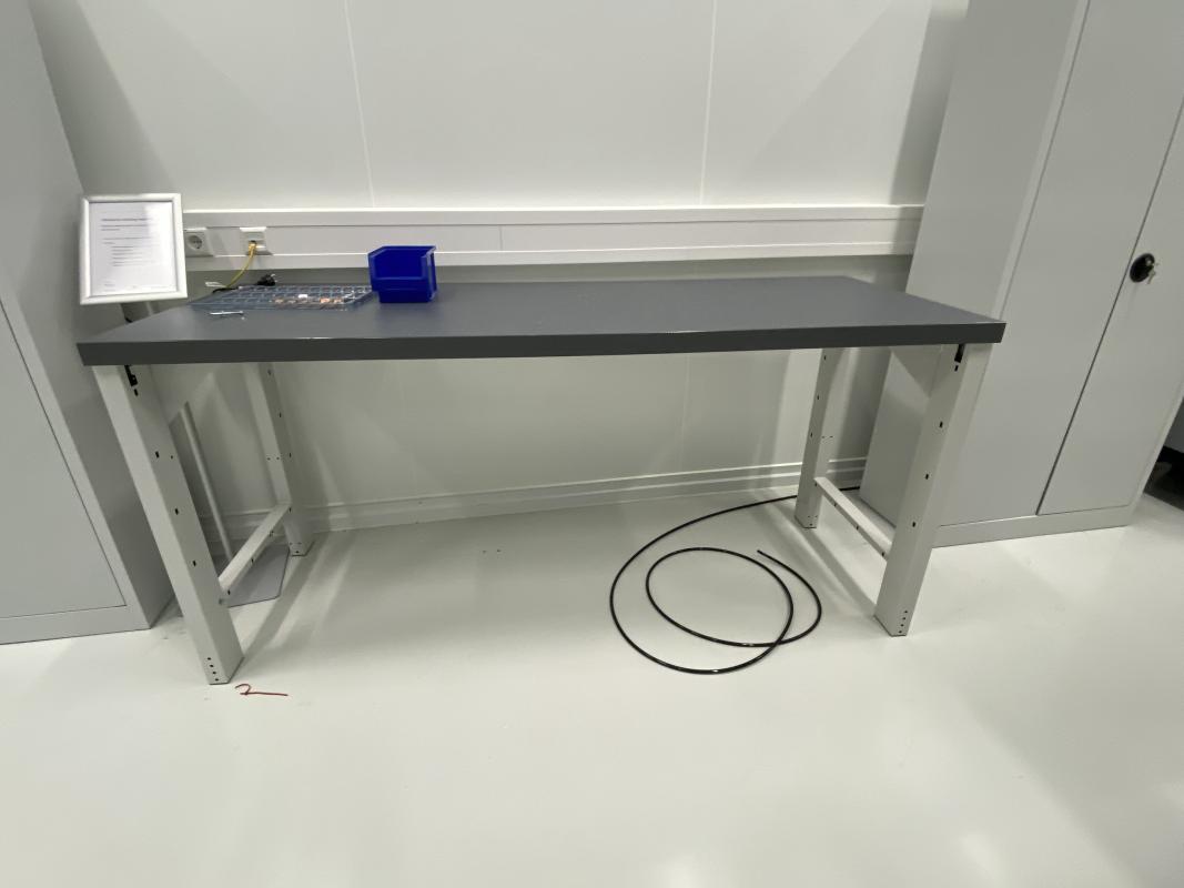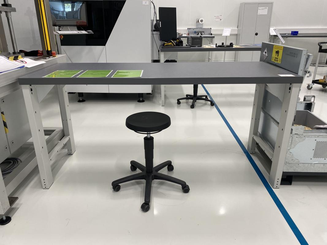 Make: GARANT, 1,500-2,000 x 750 mm, 4 black industrial swivel chairs, 2 stools, on wheels