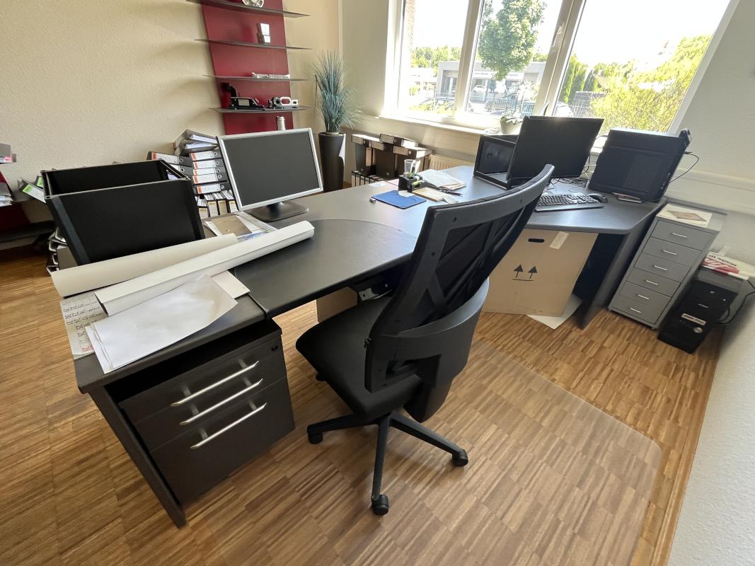 Consists of: desk-angle combination, office swivel chair, double-door steel cabinet, 2 shelves, office roll container, metal container, Bisley, 6 drawers, office swivel chair, without IT equipment, without contents