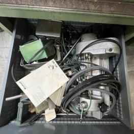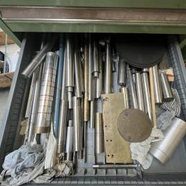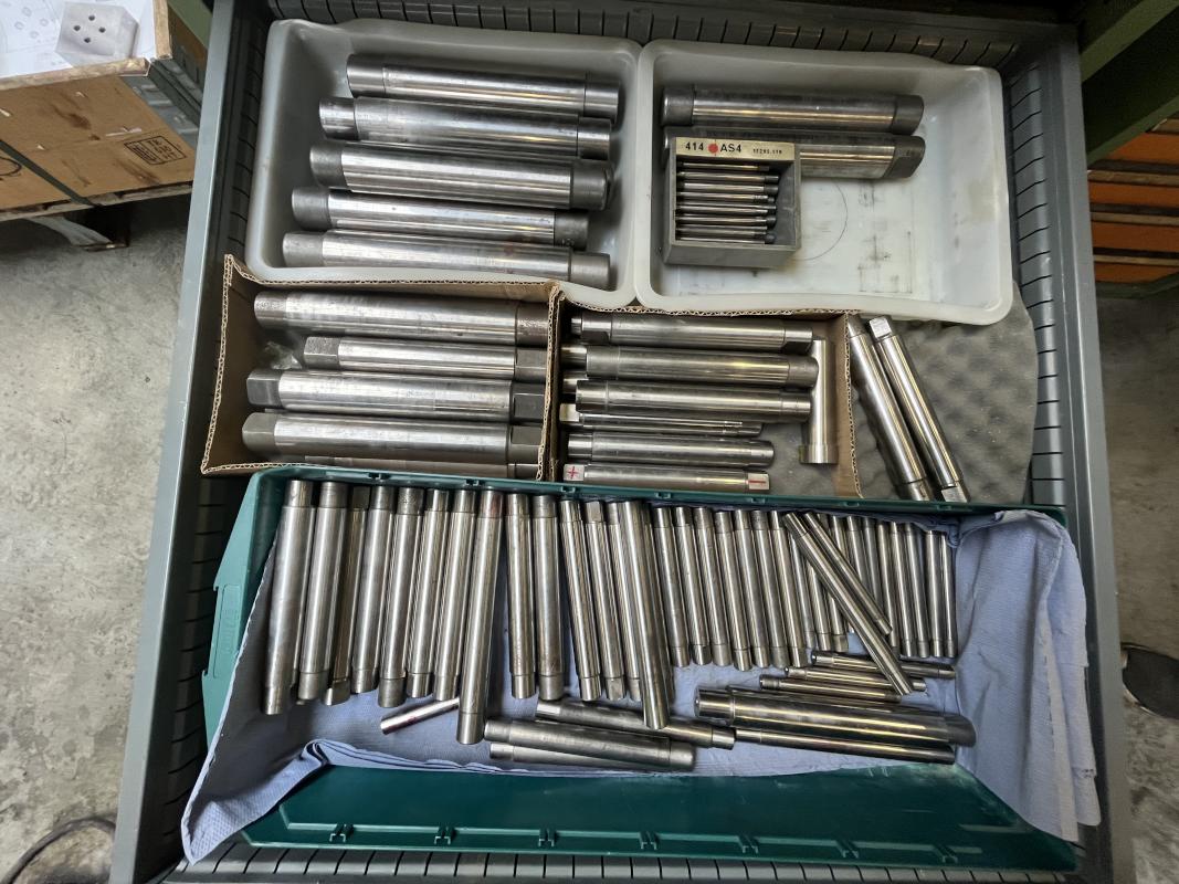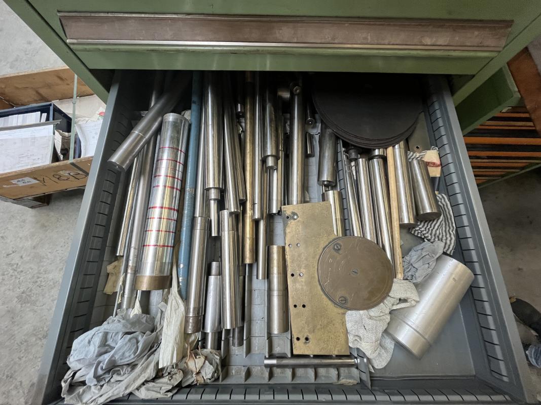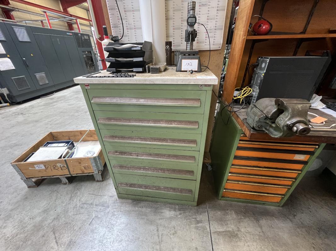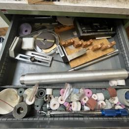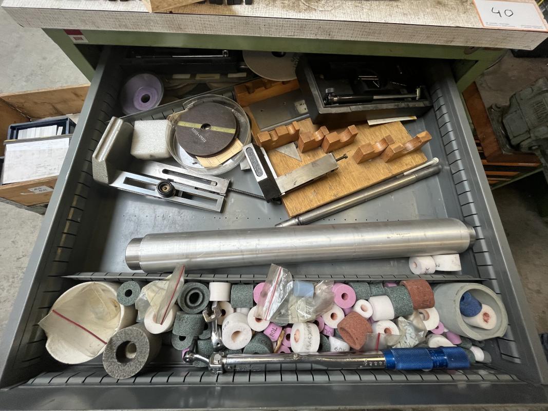Make: STUDER, Model: S20-2, Year of construction: 2002, Serial no. 015.1605.05.102, center height/width 100 mm / 450 mm, grinding length 450 mm, max. speed 3,500 mm/min, max. feed rate 1.5 mm/min, 2 handwheels, max. speed 2,200 rpm, tailstock, MT2 tool holder, 20 mm spindle travel, belt filter system, work light, measuring control, manufacturer Mapos, type E5, telescopic drawer cabinet, 6 drawers, contents: mandrel bars, grinding stones, plug gauge set
