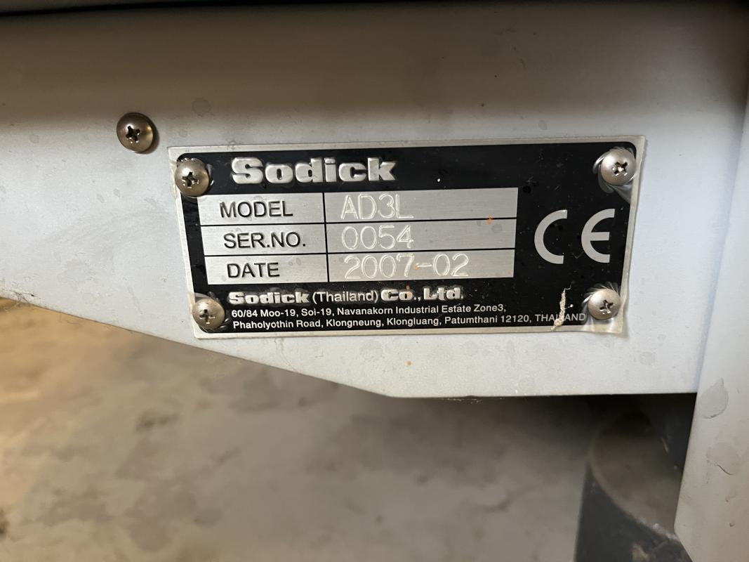 Make: SODICK, Model: AD3L, Year of construction: 2007, Ser. No. 0054, control system, manufacturer Sodick, type LN1W, X/Y/Z travel 300 x 250 x 250 mm, 4-station electrode changer, fire extinguishing system, manufacturer Kühner, tool holder Erowa