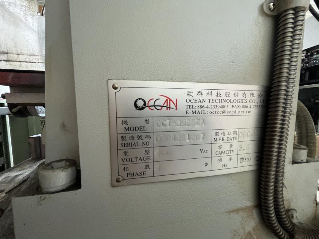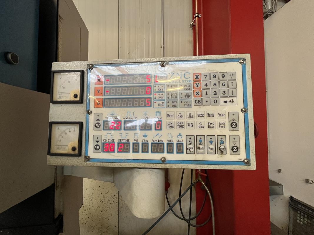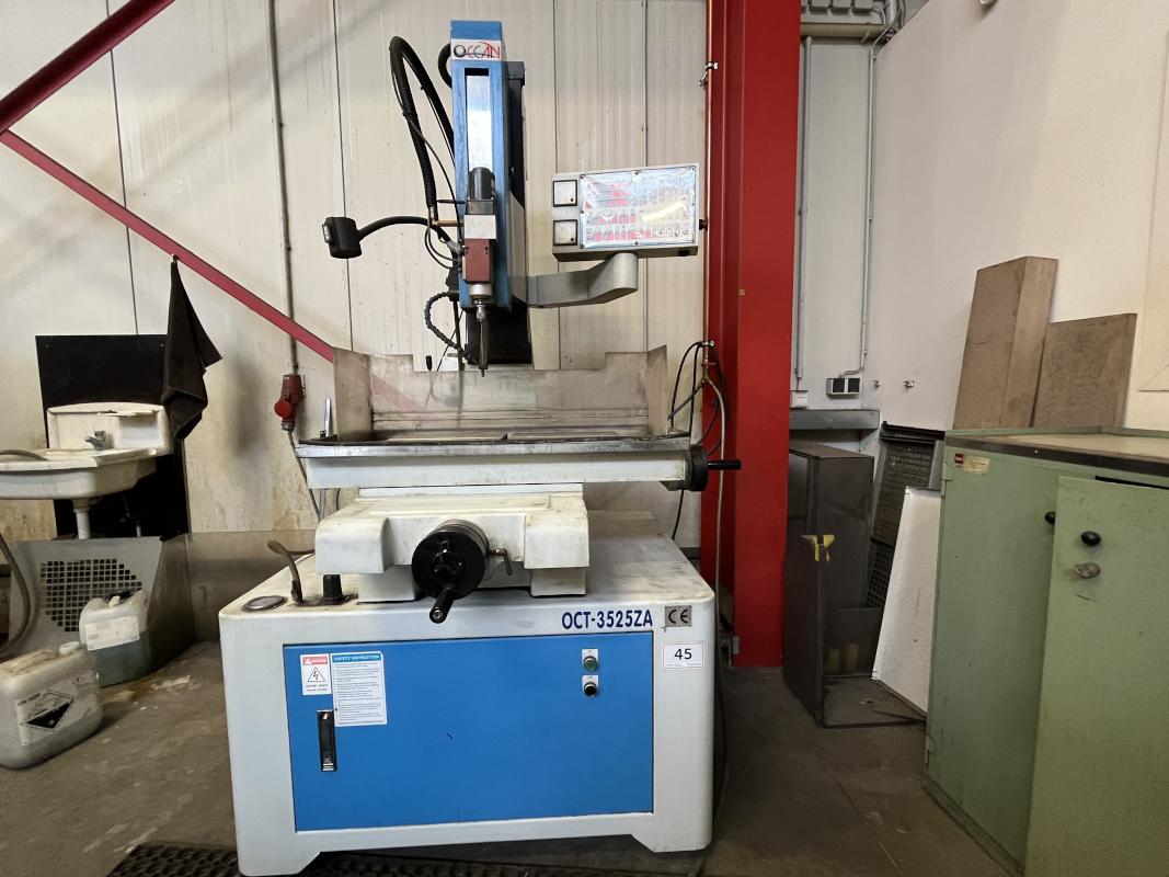 Make: OCEAN, Model: OCT-3525ZA, Year of construction: 2007, Serial No. 0304381207, Control, ZNC, X/Z travel 350 x 250 mm, Z travel 350 mm, W travel 200 mm, Max. workpiece size 600 x 300 x 300 mm, Max. workpiece weight 250 kg, Max. electrode diameter 3 mm, Accessories: Sheet steel cabinet, double-doored, Contents: Various brass tubes, Various BDM electrodes