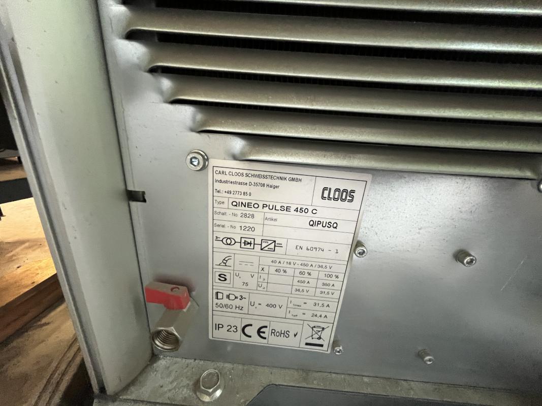 Make: CLOOS, Model: Qineo Pulse 450C, Ser. no. 1220, Digital welding control, Welding power 450 A, Hose package, Cylinder holder, Digital display