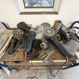 3 levels, 2 angle grinders, Bosch, various grinding wheels