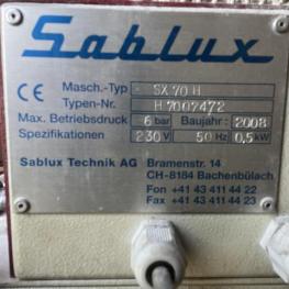 Make: SABLUX, Model: SX70H, Year of construction: 2008, Serial No. H7007472, Operating pressure: 6 bar, 230 V, Radiant chamber: 990 x 820 x 720 mm, Foot pedal