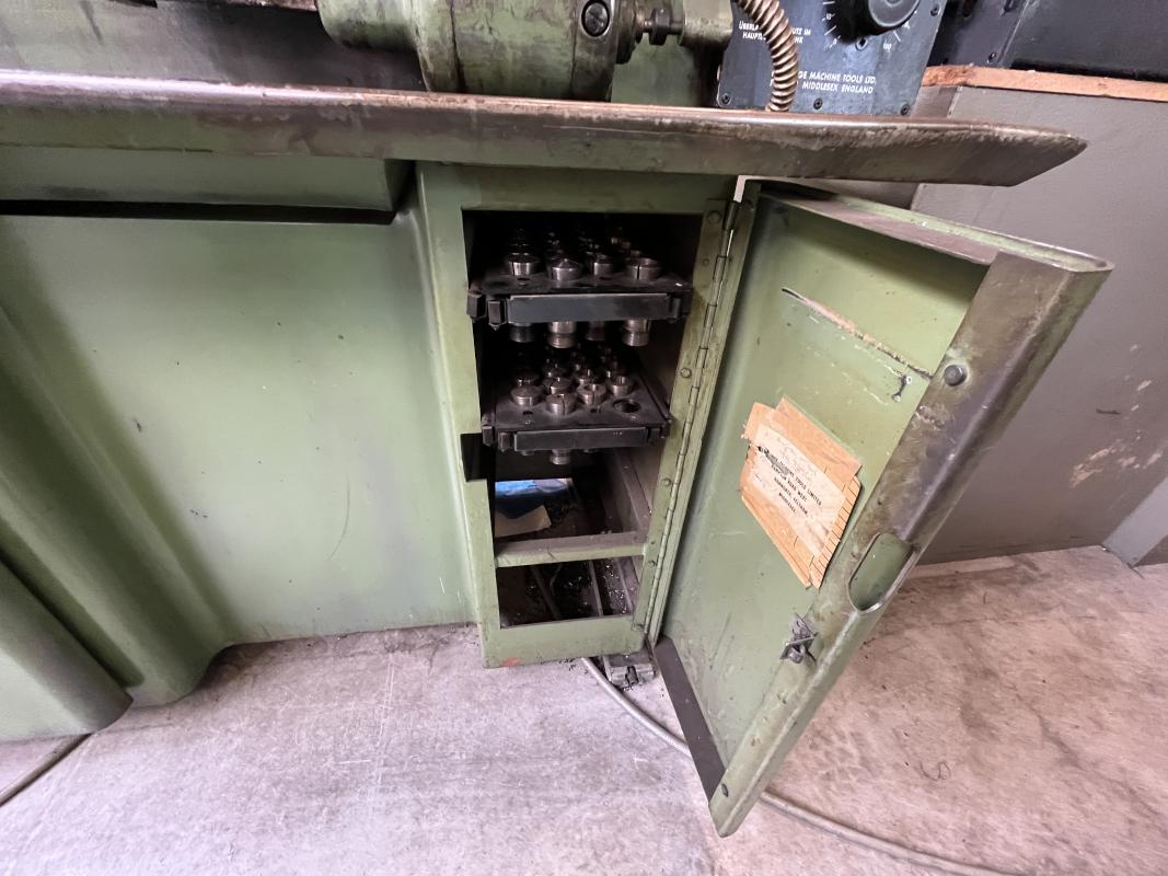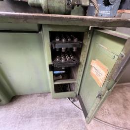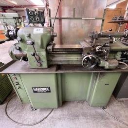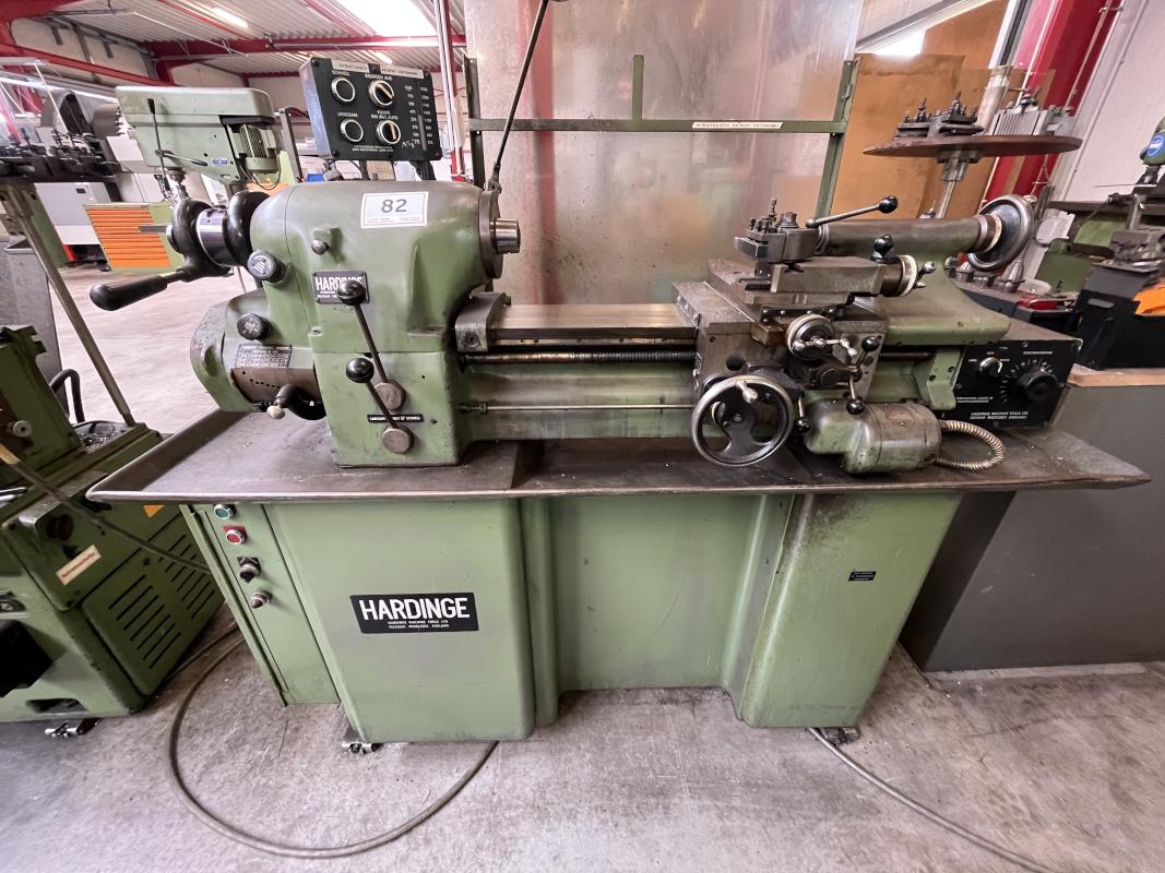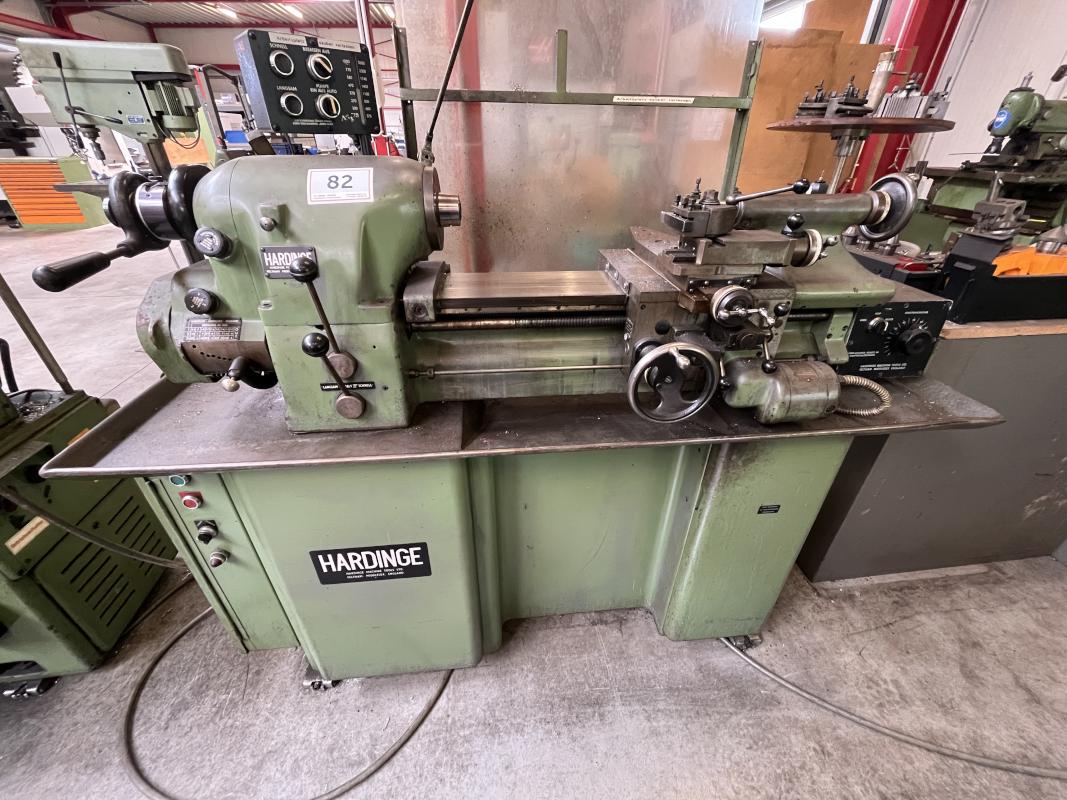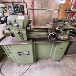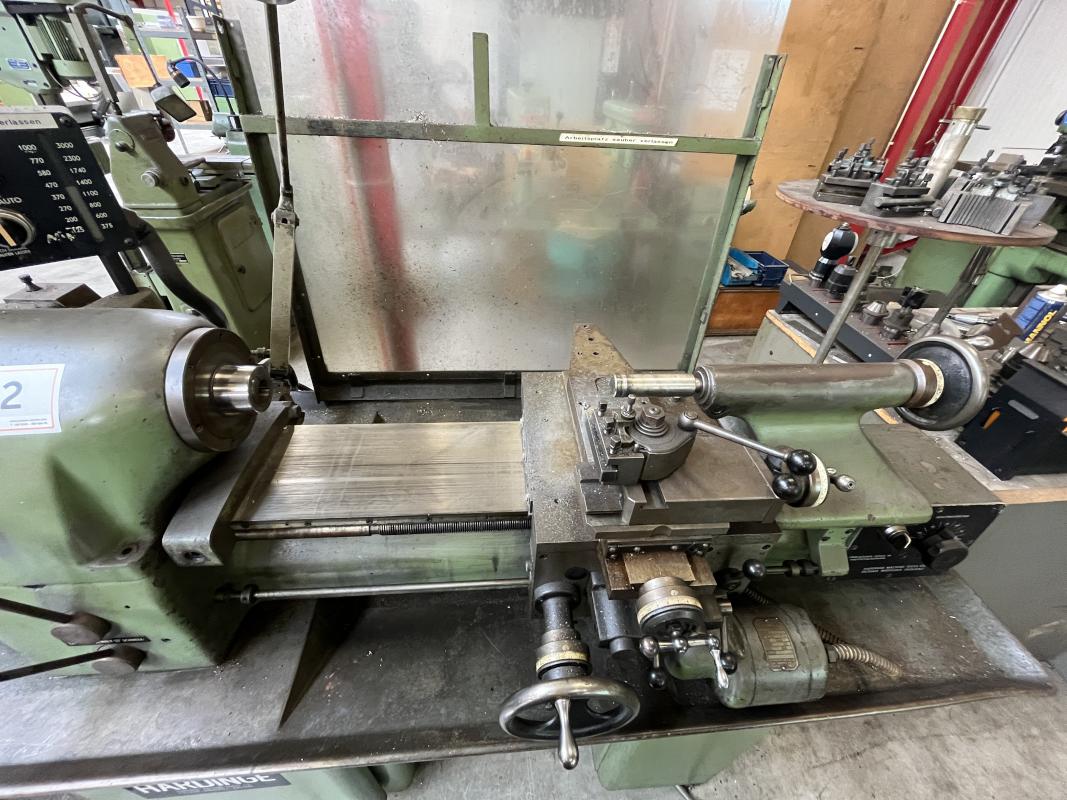 Make: HARDINGE, Model: HLV-K, Center height 139 mm, center distance 457 mm, speed 3,000 rpm, spindle bore 31 mm, tailstock, tool holder quick-change system, Multifix, digital display, work light, accessories: approx. 64 collets, sheet steel cabinet, double-door, contents: various tool holders, 3-jaw chuck
