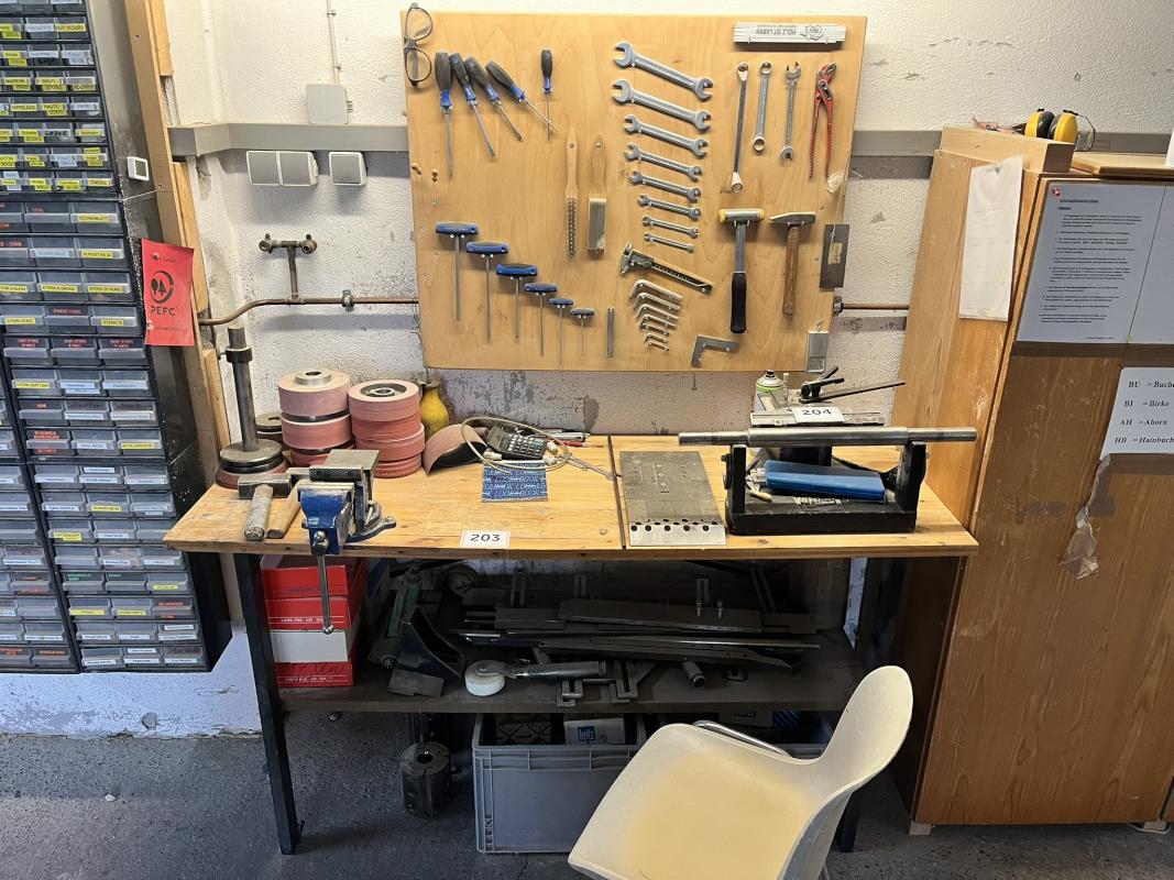 Steel base frame, wooden support, vice, 110 mm, tool board