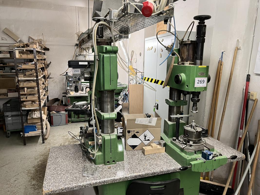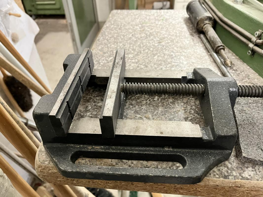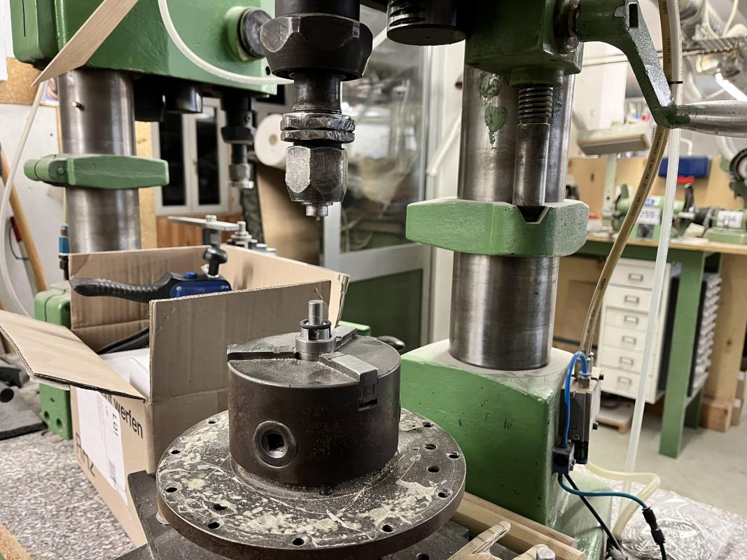 2x three-jaw chuck, machine vice, jaw width 100 mm, mounted under the table