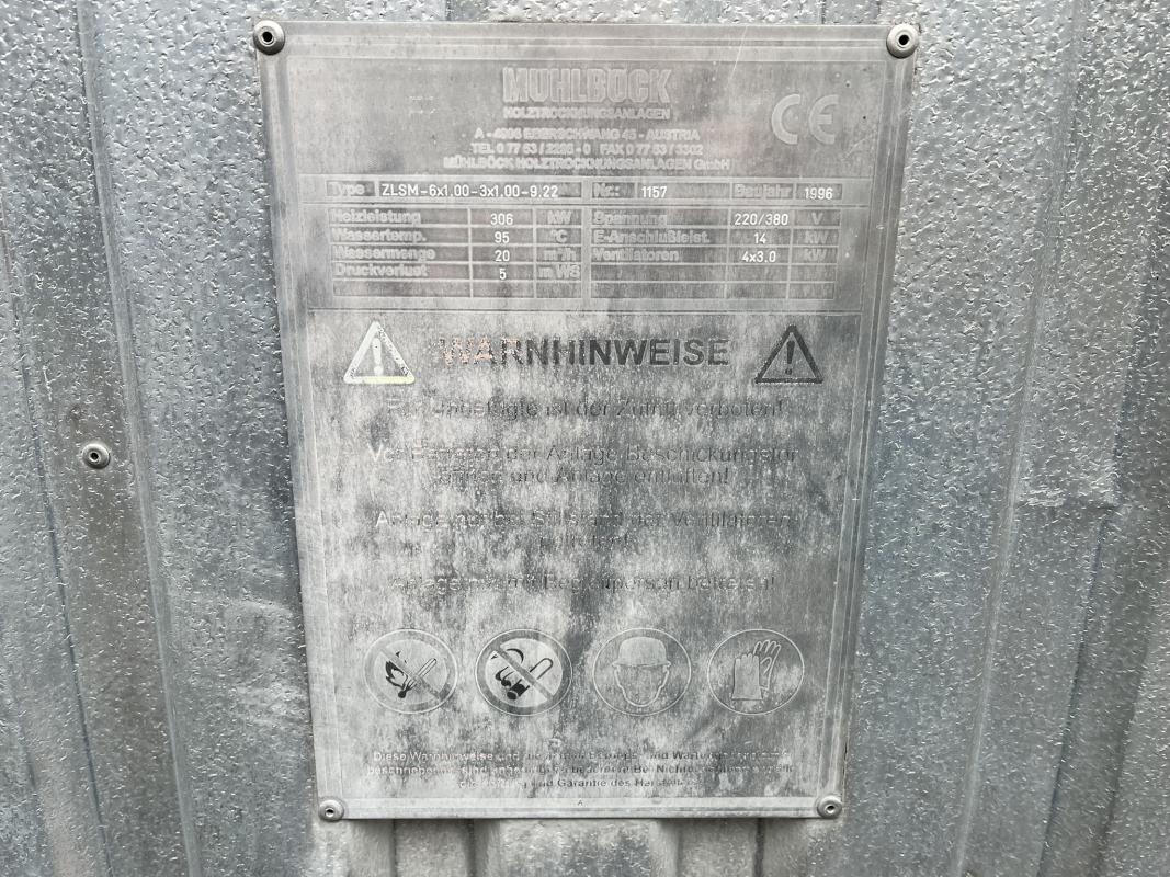 Make: MÜHLBÖCK, Model: ZLSM-6x1.00-3x1.00-9.22, Year of construction: 1996, Serial no. 1157, wood, output 306 kW, water temperature 95 °C, water volume 20 m³/h, control system renewed in 2019