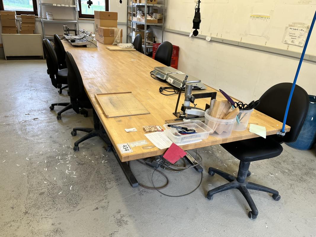 Solid wood, base frame, approx. 6,000 mm, 6 office swivel chairs