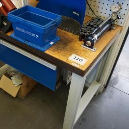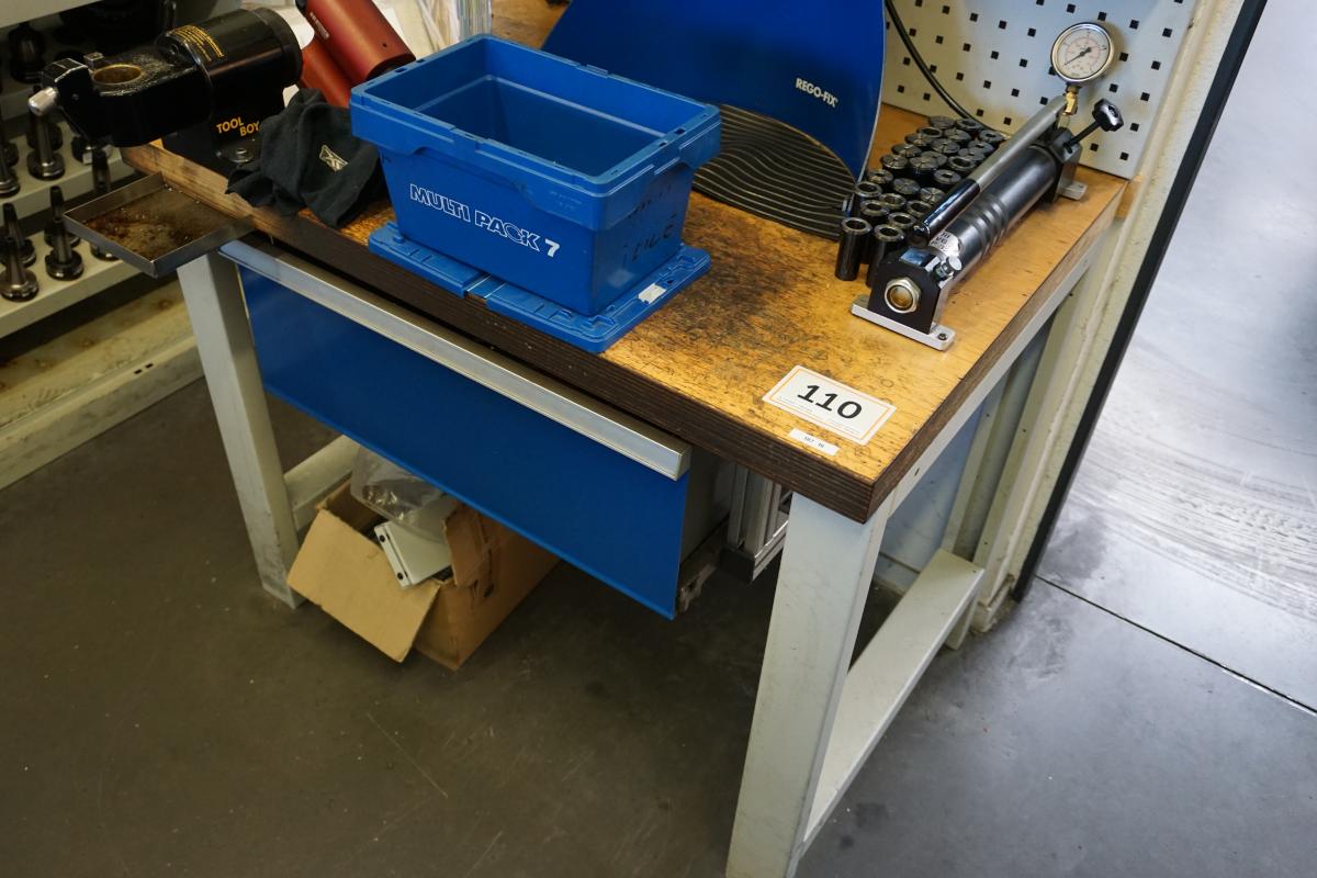 Wooden worktop, W approx. 1,000 mm, 10 drawers, Toolboy, tool assembly stand, tool assembly device, manufacturer Power Grip, type PGC2500M, hand-operated hydraulic clamping device, collets