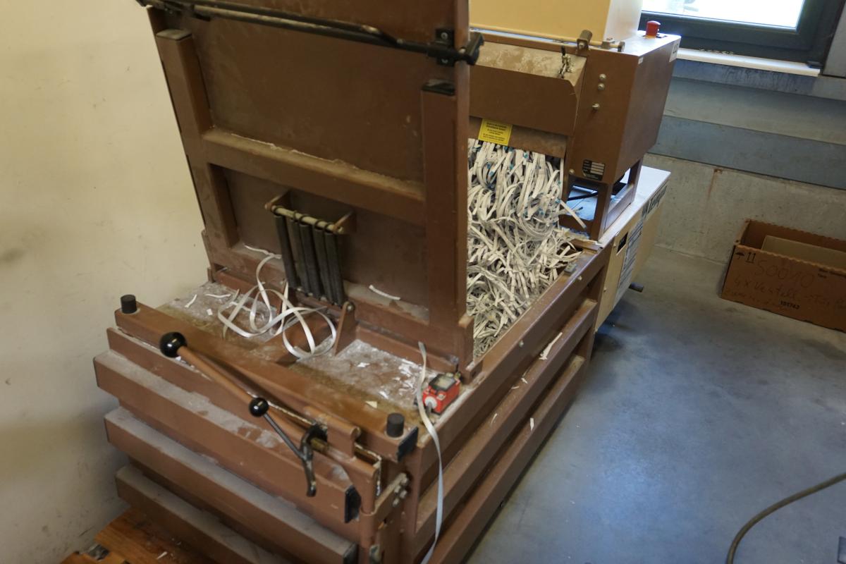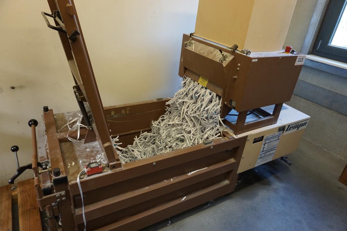 Make: TEMPO, Model: P460/2,2, Manufacturer: TEMPO, type: P460/2.2, serial no. 1460-0202A, cutting width 6 mm, document shredder, 3 plastic packaging tape rolls, bale width approx. 500 mm